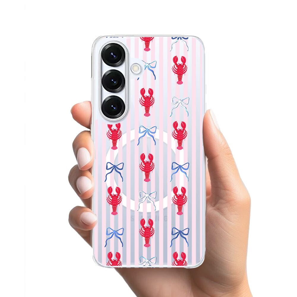 Etui do Samsung Galaxy S25 z MagSafe przeźroczyste, silikonowe Flexi, krab i kokardki
