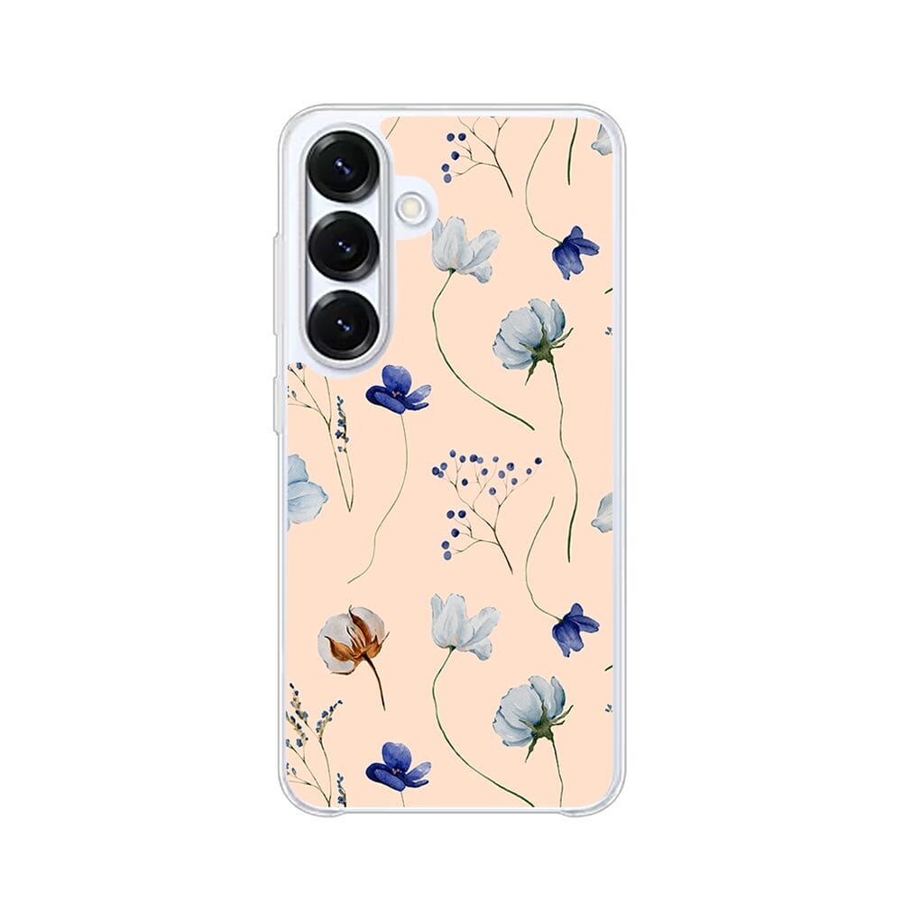 Etui do Samsung Galaxy S25 z MagSafe przeźroczyste, silikonowe Flexi, kwiatki niebieskie na pudrowym tle