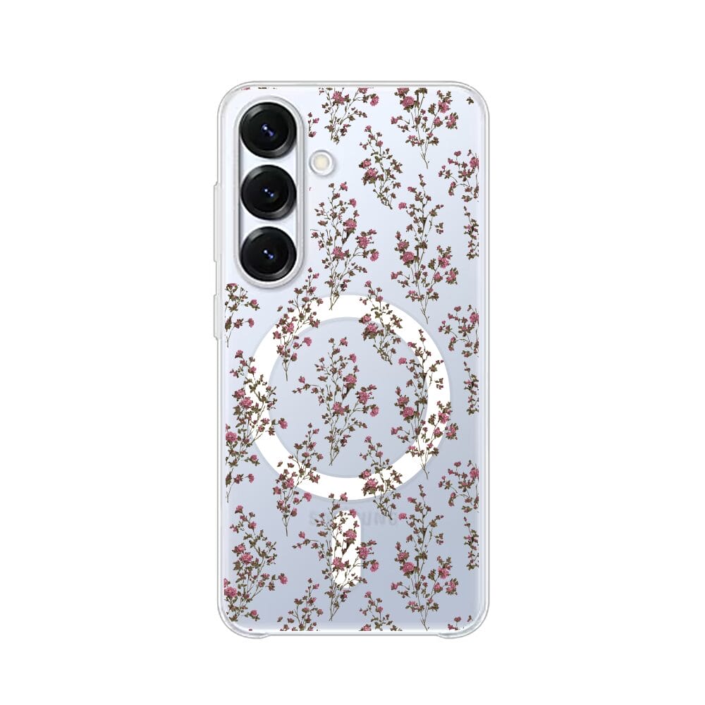 Etui do Samsung Galaxy S25 z MagSafe przeźroczyste, silikonowe Flexi, Mini Patterns, Różyczki