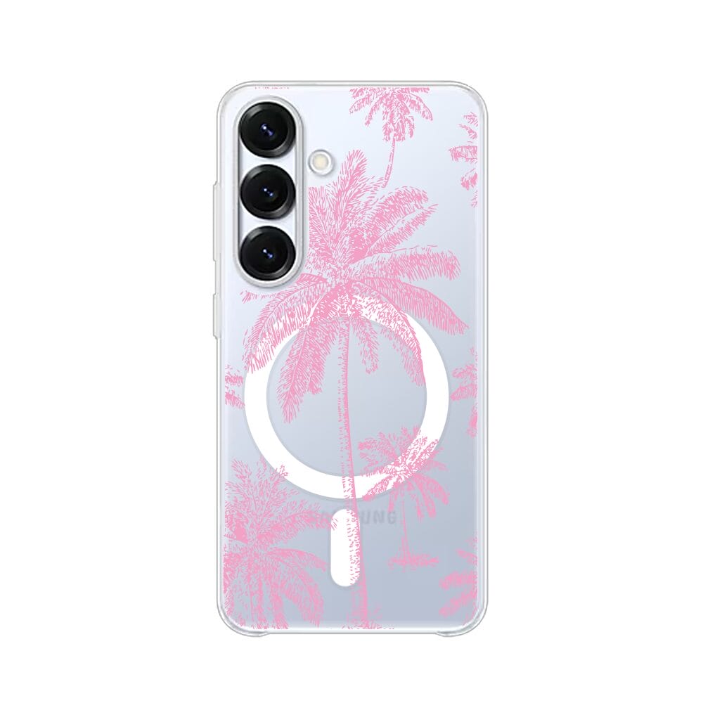 Etui do Samsung Galaxy S25 z MagSafe przeźroczyste, silikonowe Flexi, Mystic, Różowe palmy