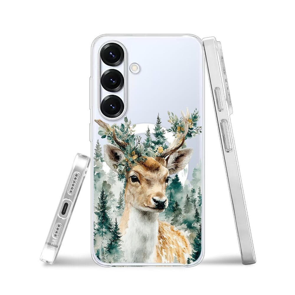 Etui do Samsung Galaxy S25 z MagSafe przeźroczyste, silikonowe Flexi, Przytulne święta, Leśny jelonek