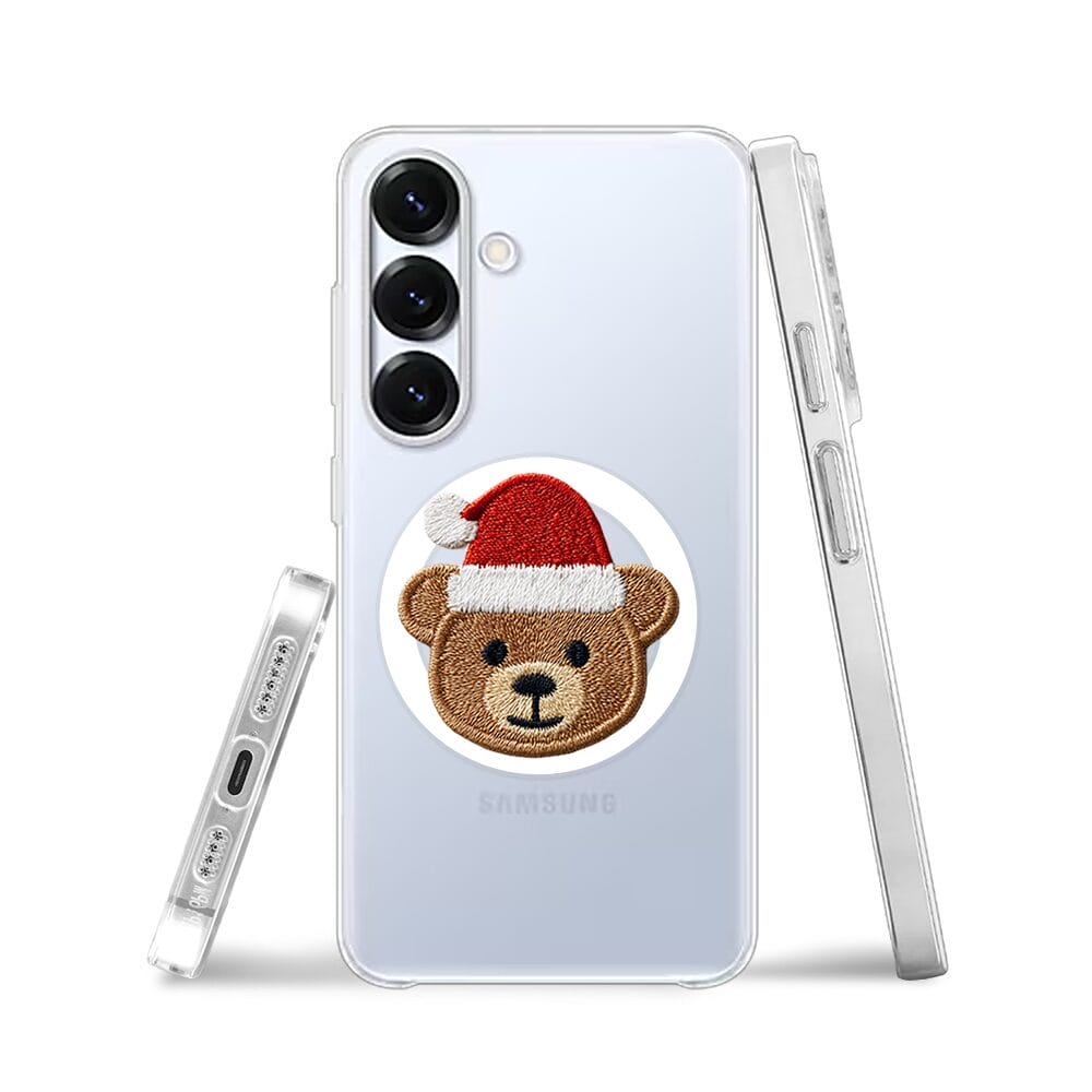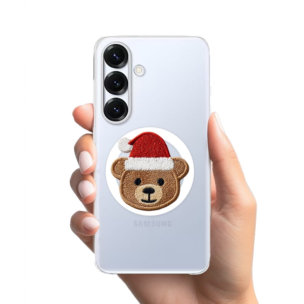 Etui do Samsung Galaxy S25 z MagSafe przeźroczyste, silikonowe Flexi, Przytulne święta, Miś mikołajek
