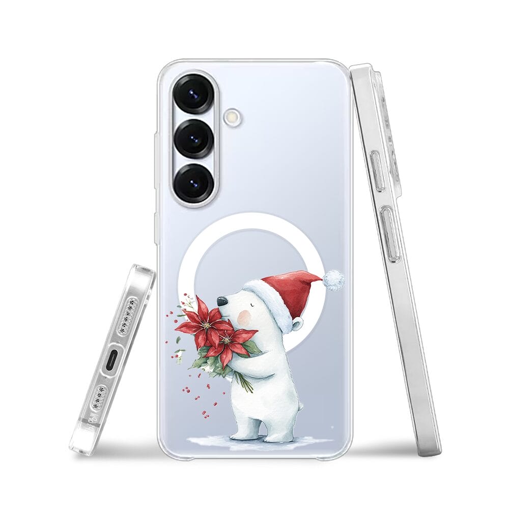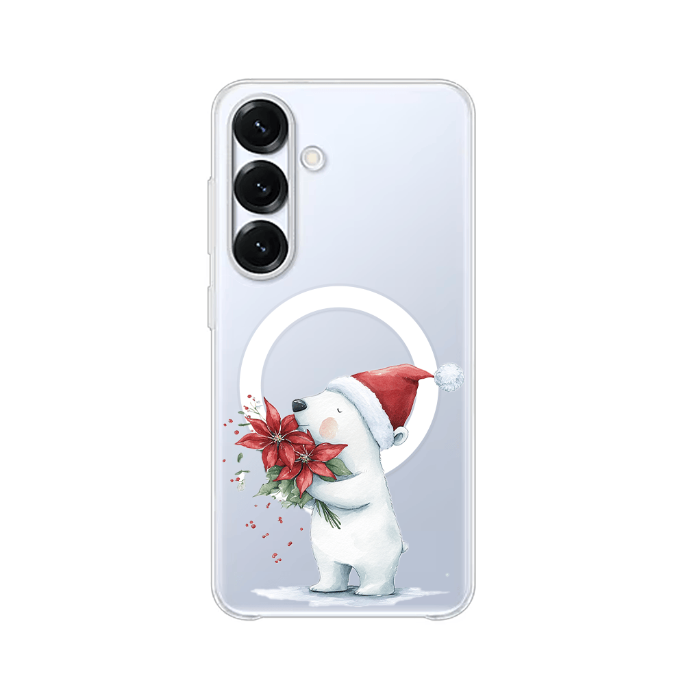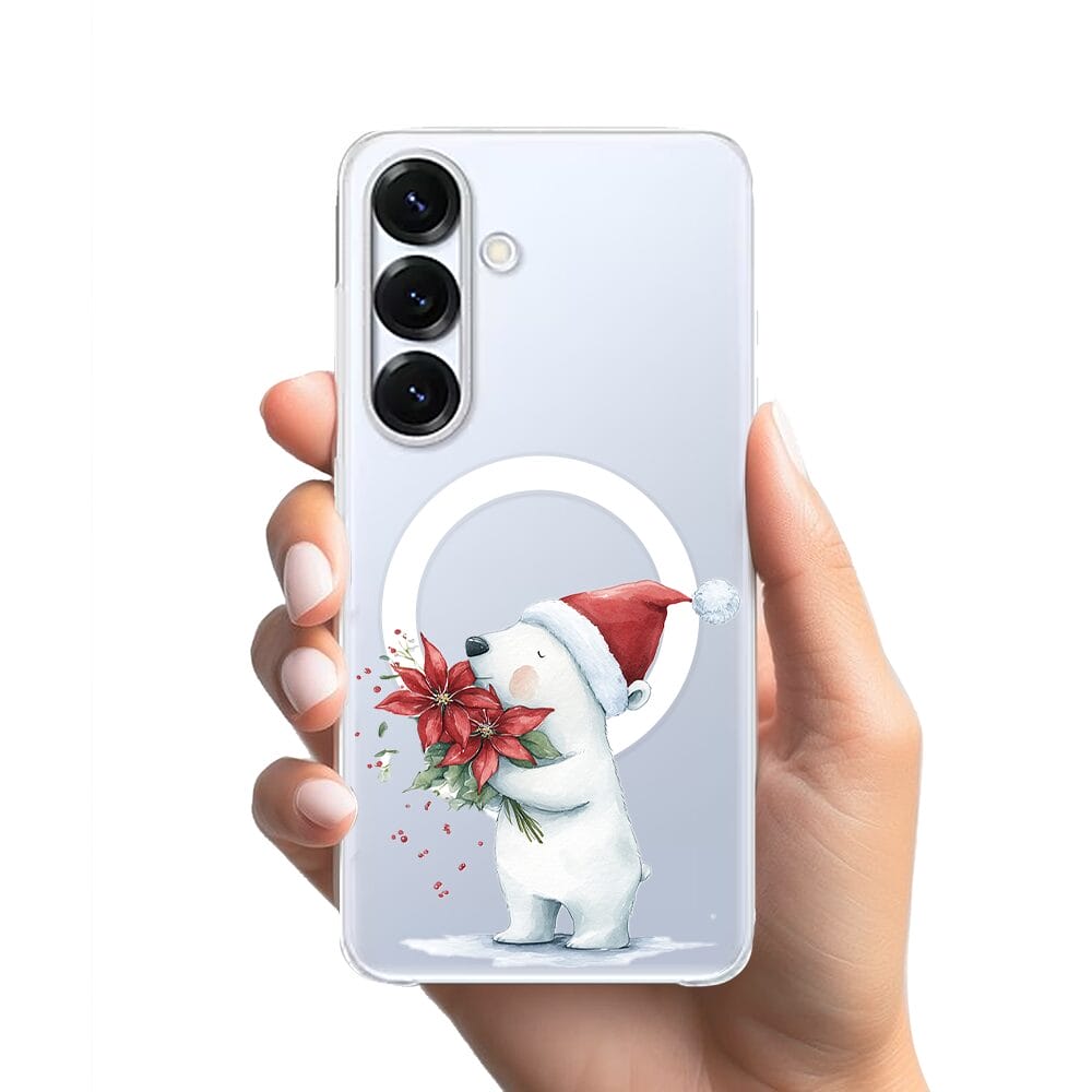 Etui do Samsung Galaxy S25 z MagSafe przeźroczyste, silikonowe Flexi, Przytulne święta, Miś świąteczny