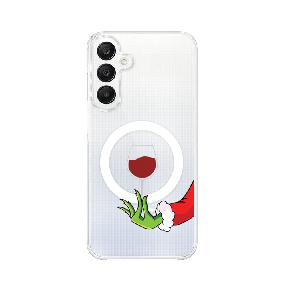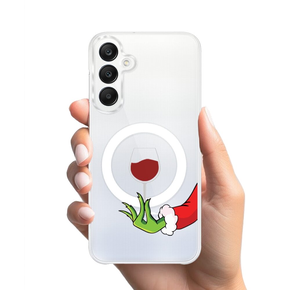 Etui do Samsung Galaxy S25 z MagSafe przeźroczyste, silikonowe Flexi, Zielony psotnik z lampką wina