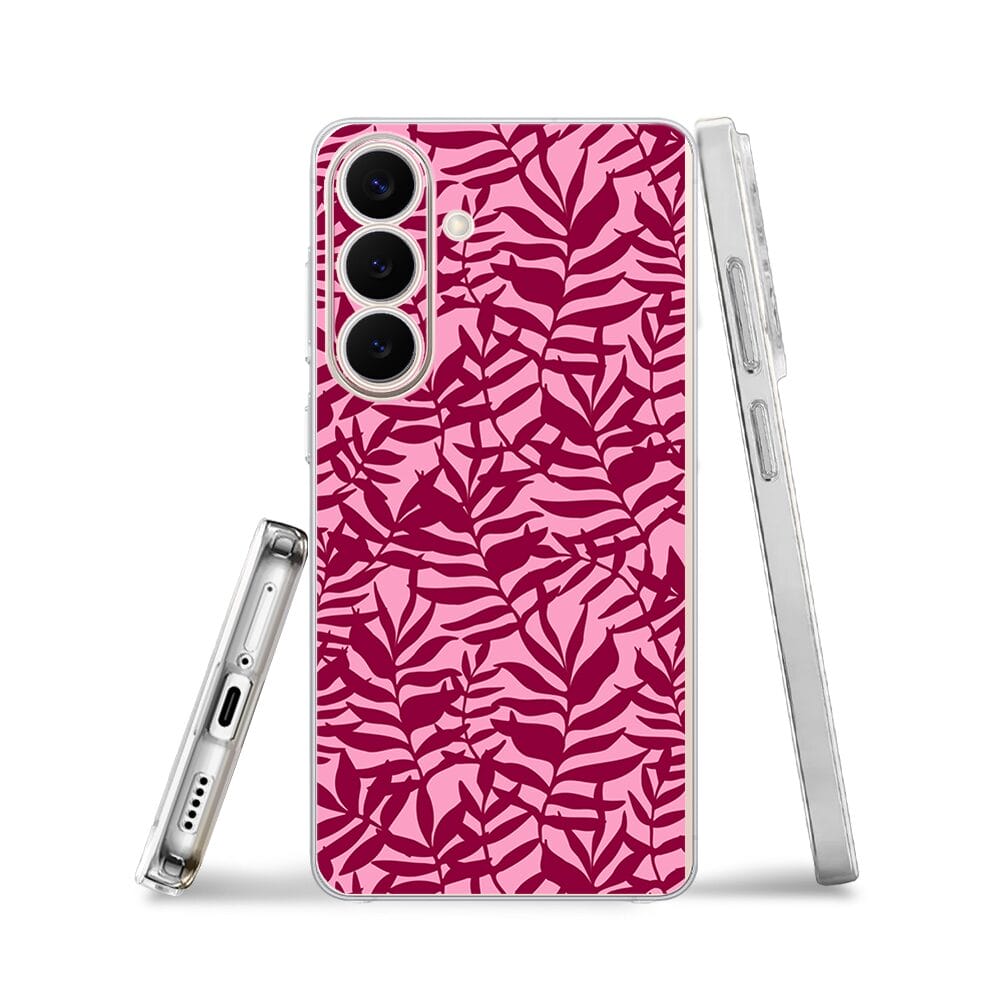 Etui do Samsung Galaxy S26 Plus przeźroczyste, silikonowe Flexi, bordowe liście