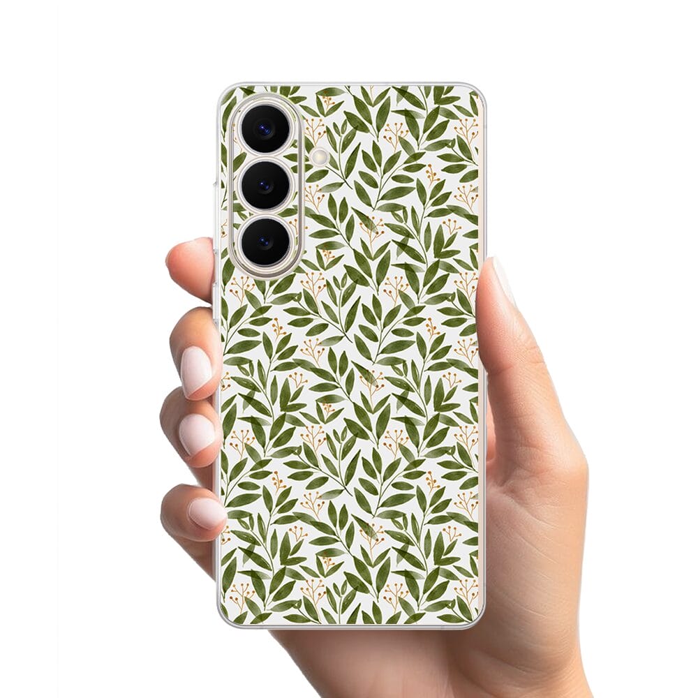 Etui do Samsung Galaxy S26 Plus przeźroczyste, silikonowe Flexi, zielone gałązki