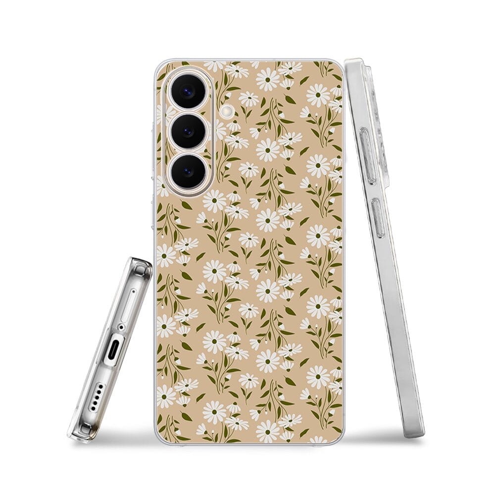 Etui do Samsung Galaxy S26 przeźroczyste, silikonowe Flexi, delikatne kwiatki na cielistym tle
