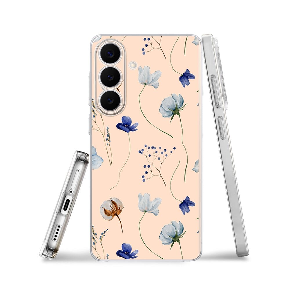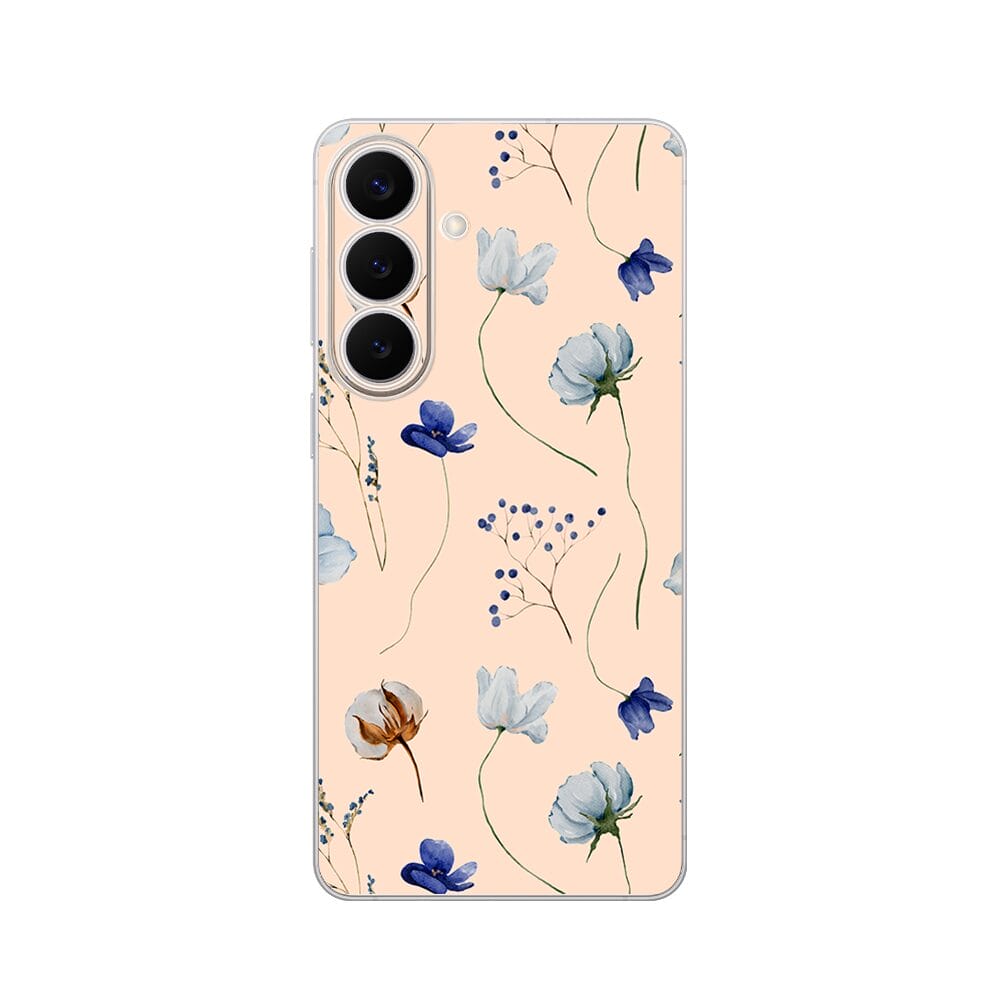 Etui do Samsung Galaxy S26 przeźroczyste, silikonowe Flexi, kwiatki niebieskie na pudrowym tle