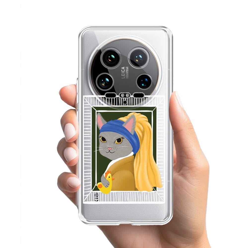 Etui do Xiaomi 14 Ultra przeźroczyste, silikonowe Flexi, kotek z kurczakiem