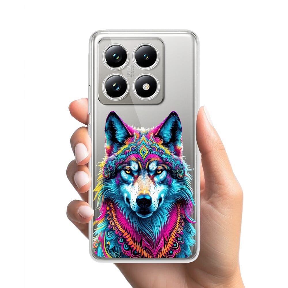 Etui do Xiaomi 14T Pro przeźroczyste, silikonowe Flexi, Dzika Mandala, Wilk