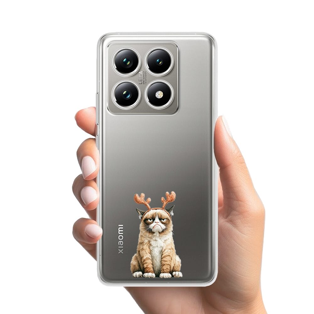 Etui do Xiaomi 14T Pro przeźroczyste, silikonowe Flexi, Przytulne święta, Kot który nie chciał być reniferem