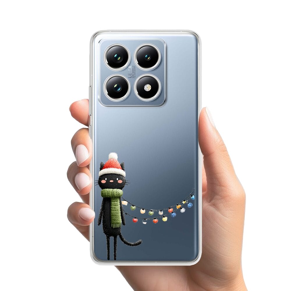 Etui do Xiaomi 14T Pro przeźroczyste, silikonowe Flexi, Przytulne święta, Kot przebrany za elfa