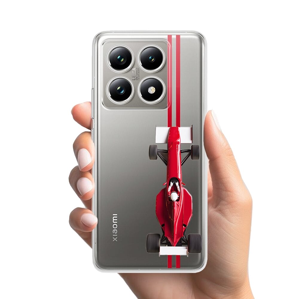 Etui do Xiaomi 14T Pro przeźroczyste, silikonowe Flexi, Szybkie Auta, czerwone F1
