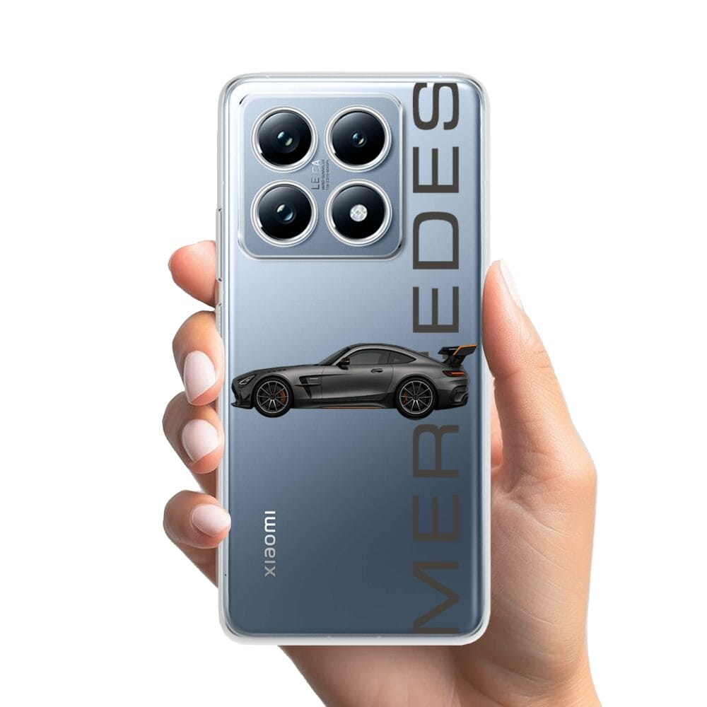 Etui do Xiaomi 14T Pro przeźroczyste, silikonowe Flexi, Szybkie Auta, Stalowe AMG-GT