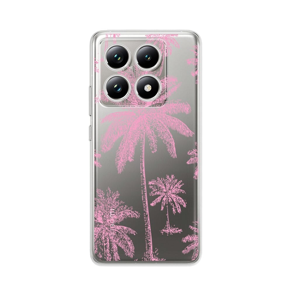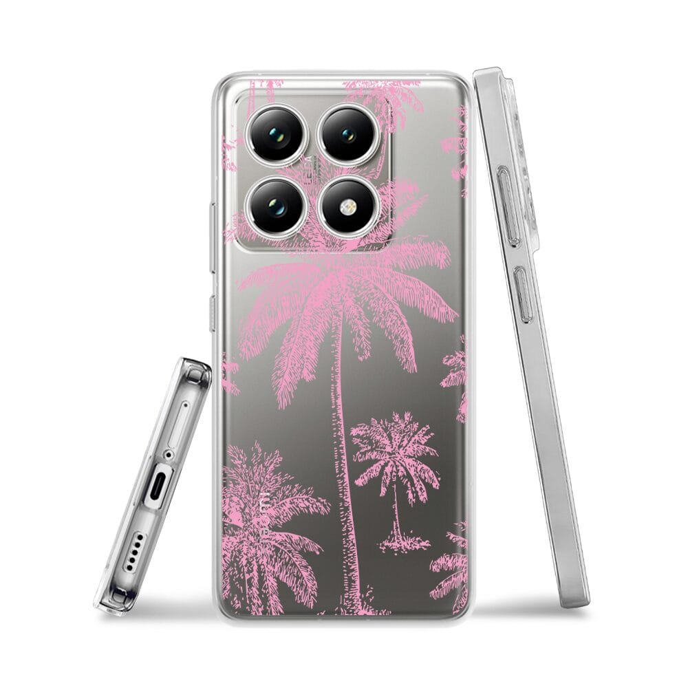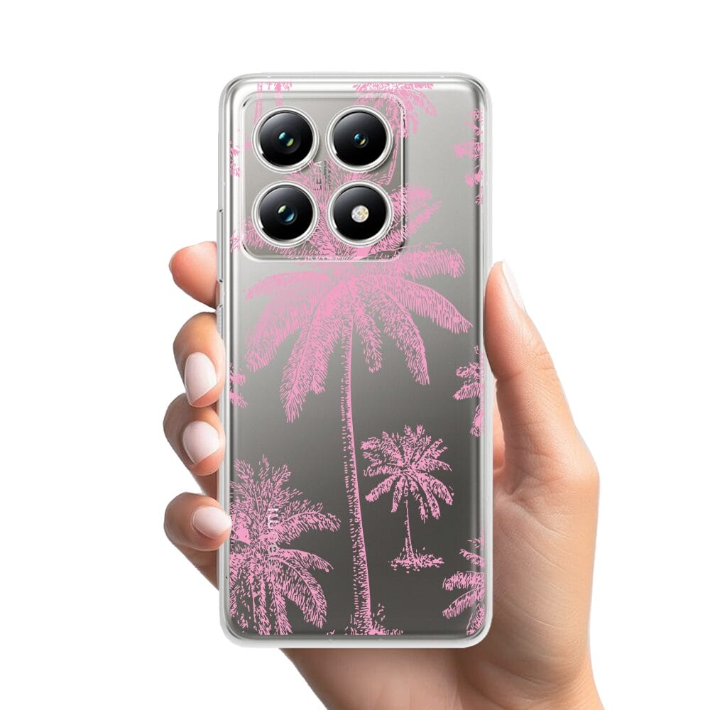 Etui do Xiaomi 14T przeźroczyste, silikonowe Flexi, Mystic, Różowe palmy
