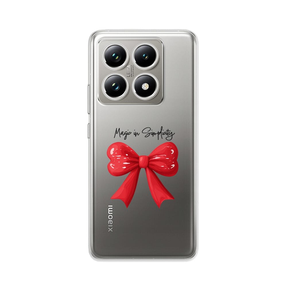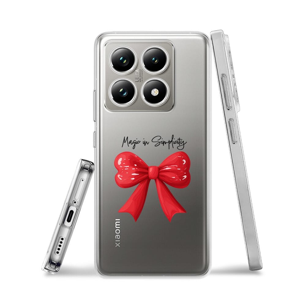 Etui do Xiaomi 14T przeźroczyste, silikonowe Flexi, Przytulne święta, Czerwona kokarda