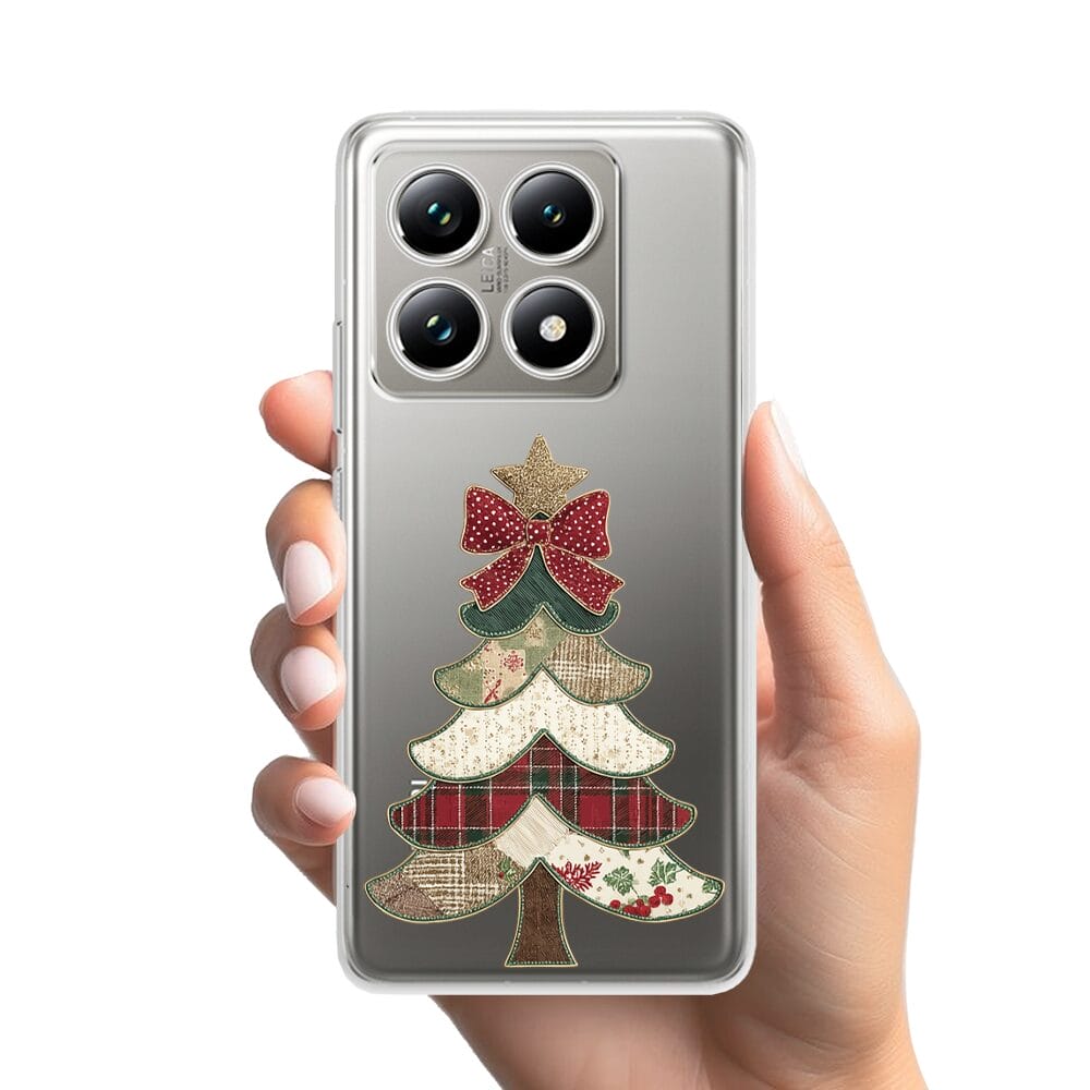 Etui do Xiaomi 14T przeźroczyste, silikonowe Flexi, Przytulne święta, Kraciasta choinka