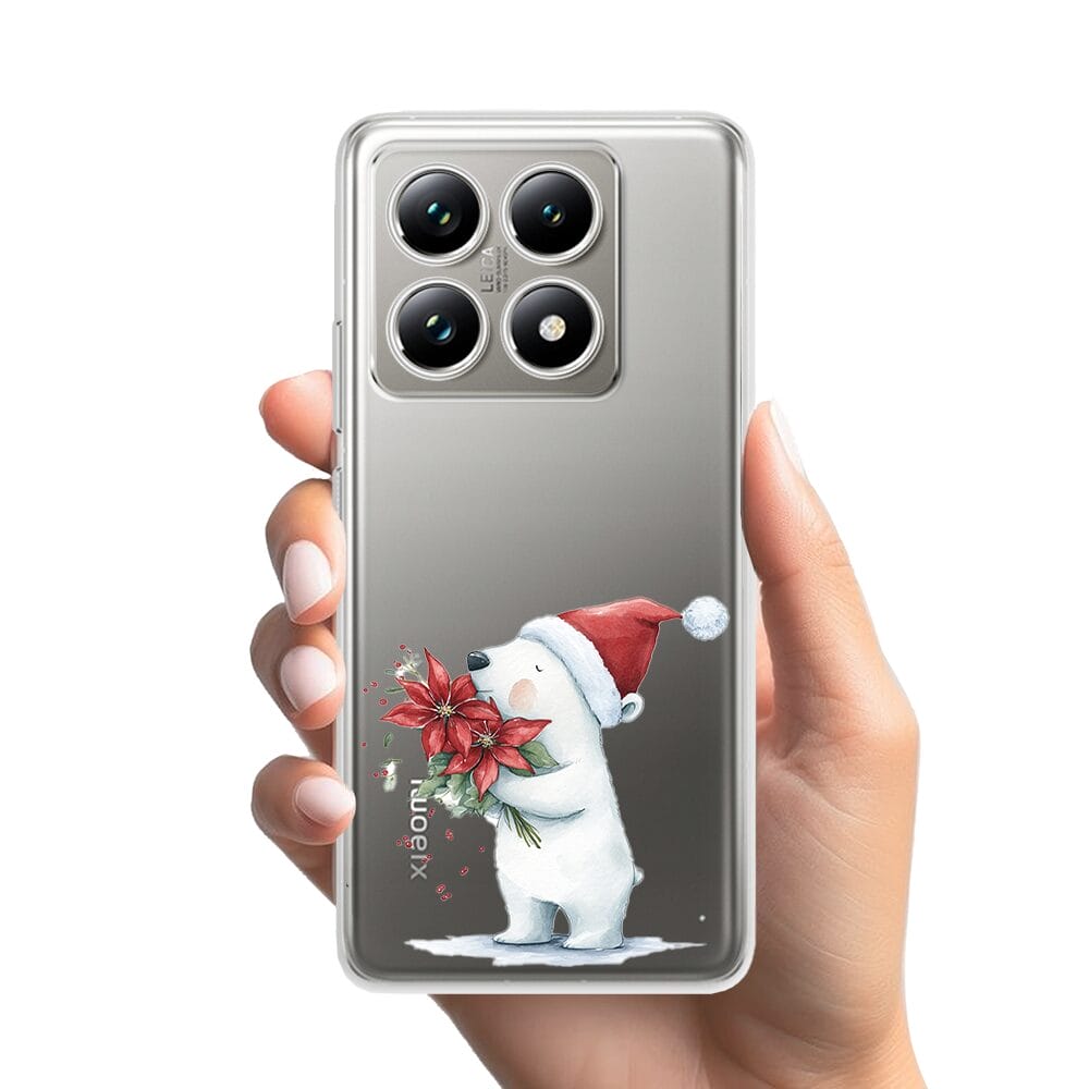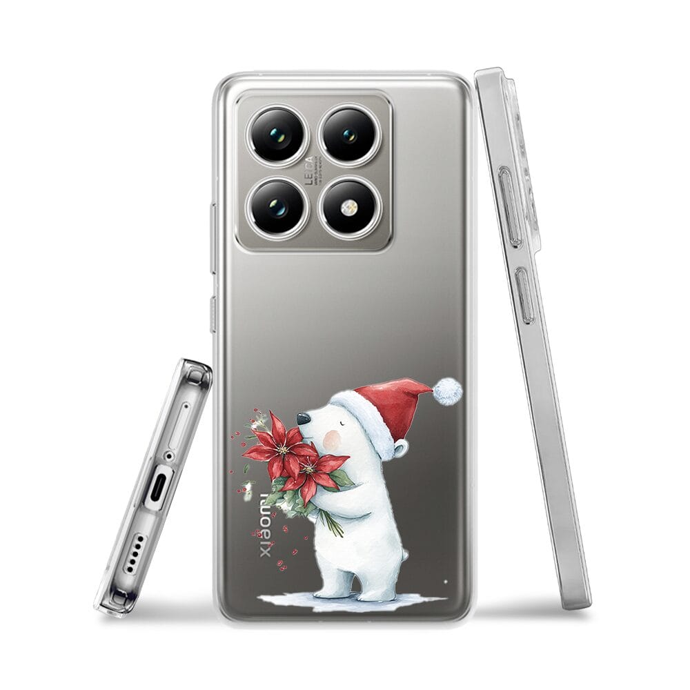 Etui do Xiaomi 14T przeźroczyste, silikonowe Flexi, Przytulne święta, Miś świąteczny