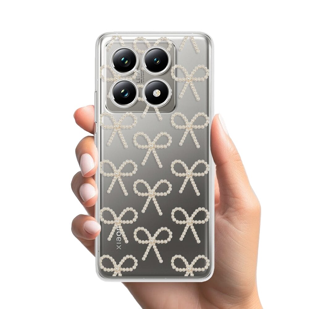 Etui do Xiaomi 14T przeźroczyste, silikonowe Flexi, Przytulne święta, złote kokardki