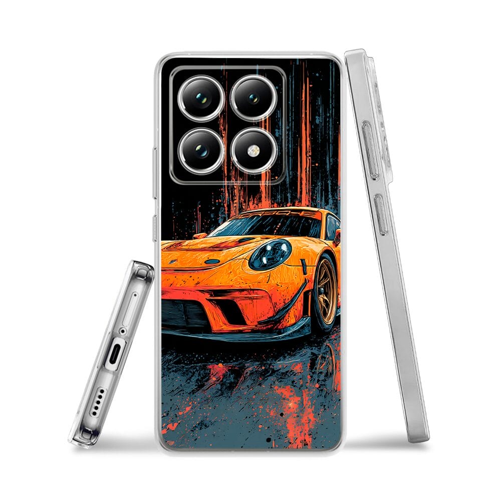Etui do Xiaomi 14T przeźroczyste, silikonowe Flexi, Szybkie Auta, Pomarańczowa 911