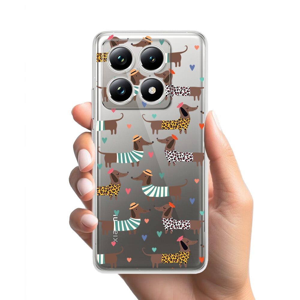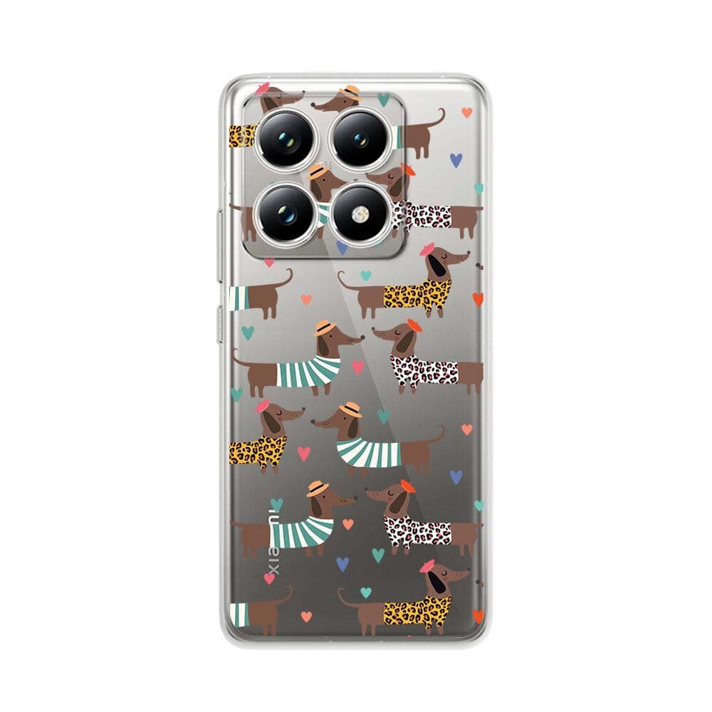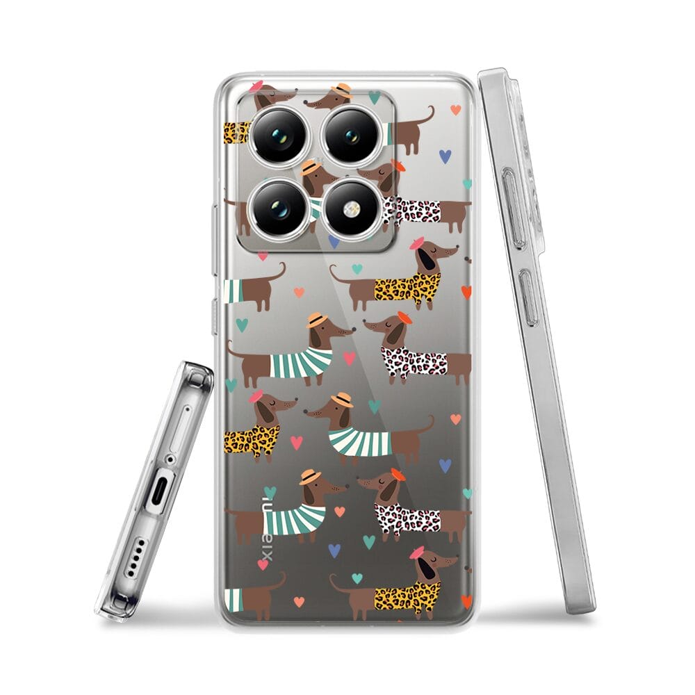 Etui do Xiaomi 14T przeźroczyste, silikonowe Flexi, zakochane jamniki