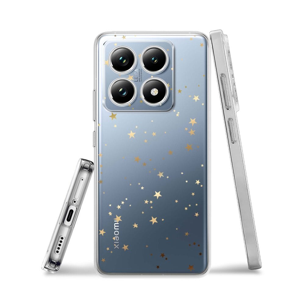 Etui do Xiaomi 14T przeźroczyste, silikonowe Flexi, Zimowa magia, Złote gwiazdki