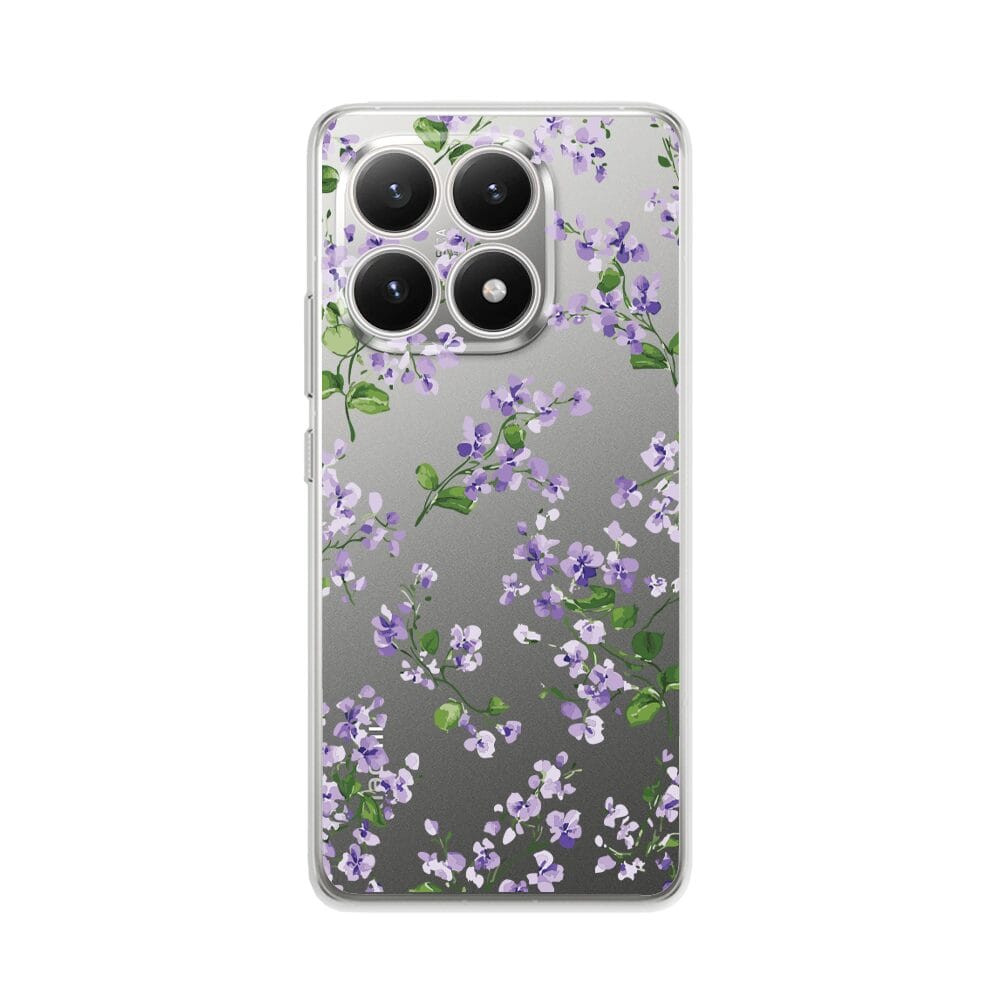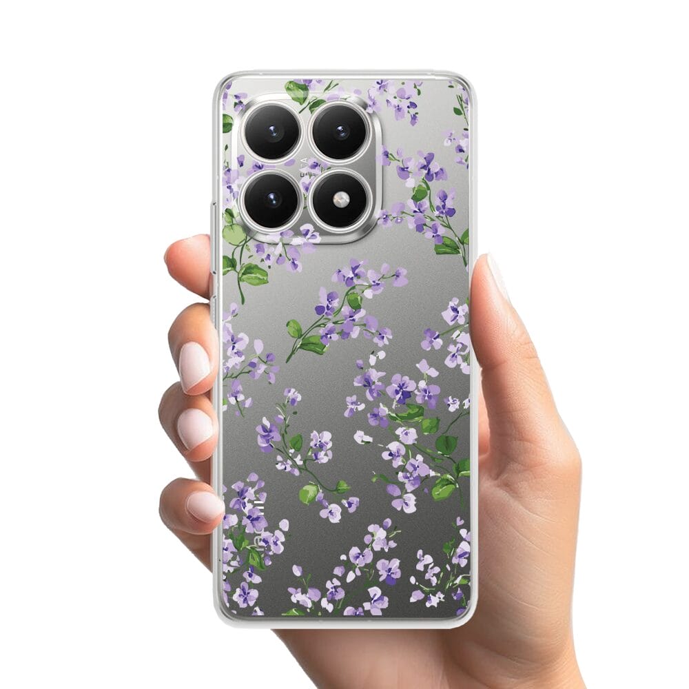 Etui do Xiaomi 15T przeźroczyste, silikonowe Flexi, Fioletowe Bratki