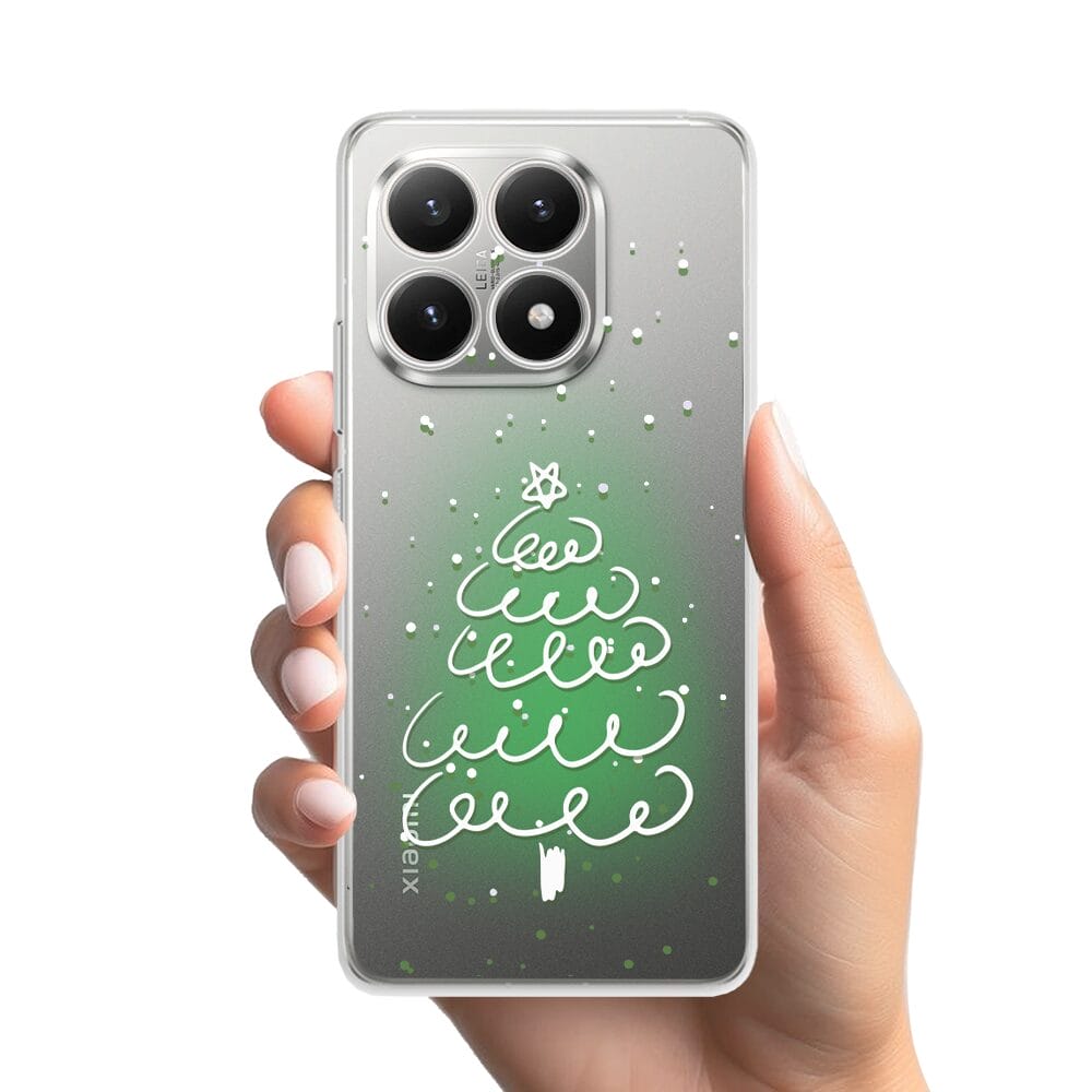 Etui do Xiaomi 15T przeźroczyste, silikonowe Flexi, malowana choinka na zielonym świetle
