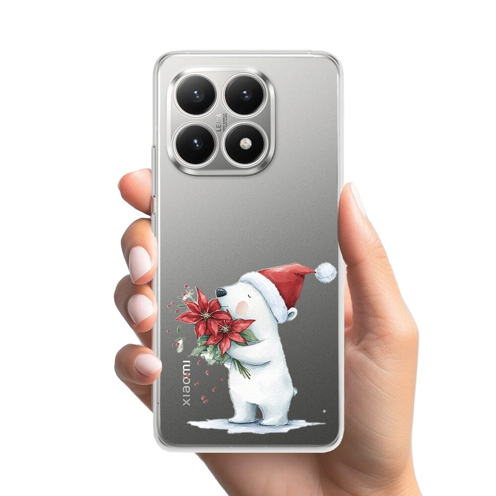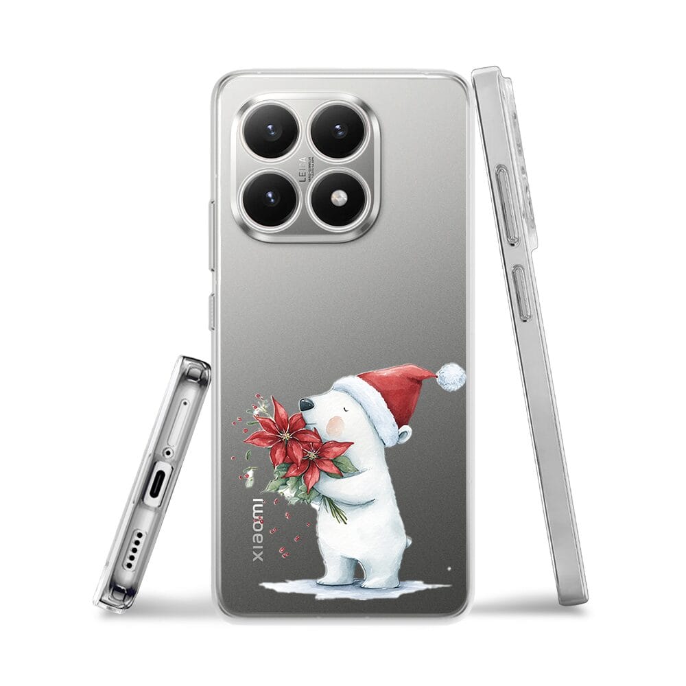 Etui do Xiaomi 15T przeźroczyste, silikonowe Flexi, Przytulne święta, Miś mikołajek