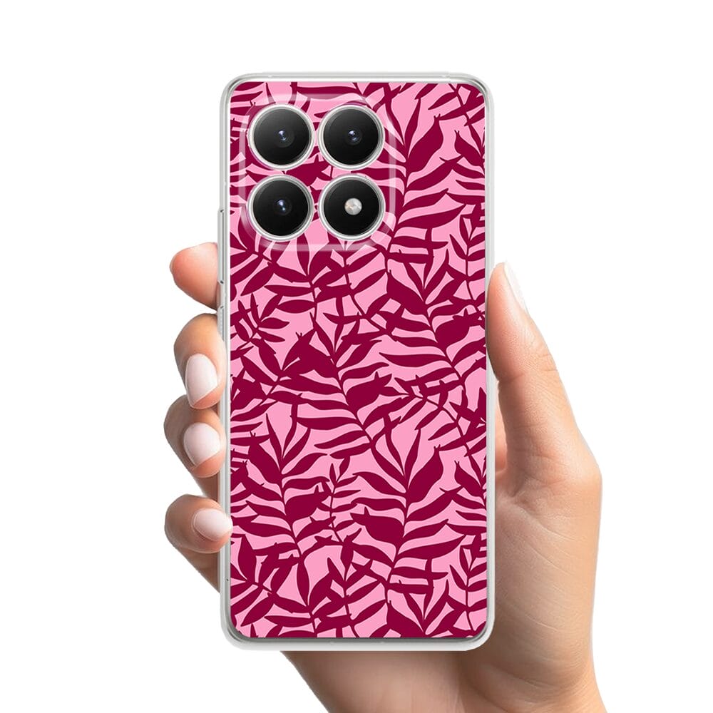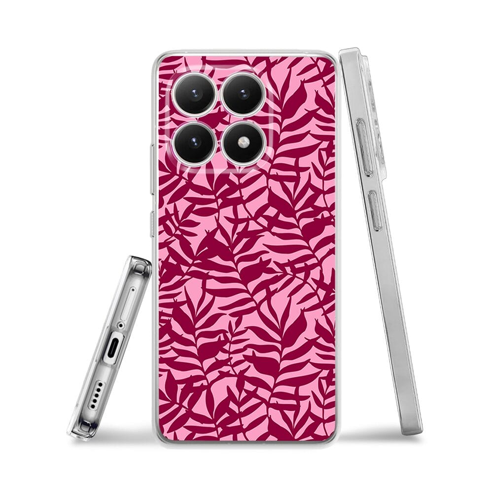 Etui do Xiaomi 15T przeźroczyste, silikonowe Flexi, Summer Patterns, bordowe liście
