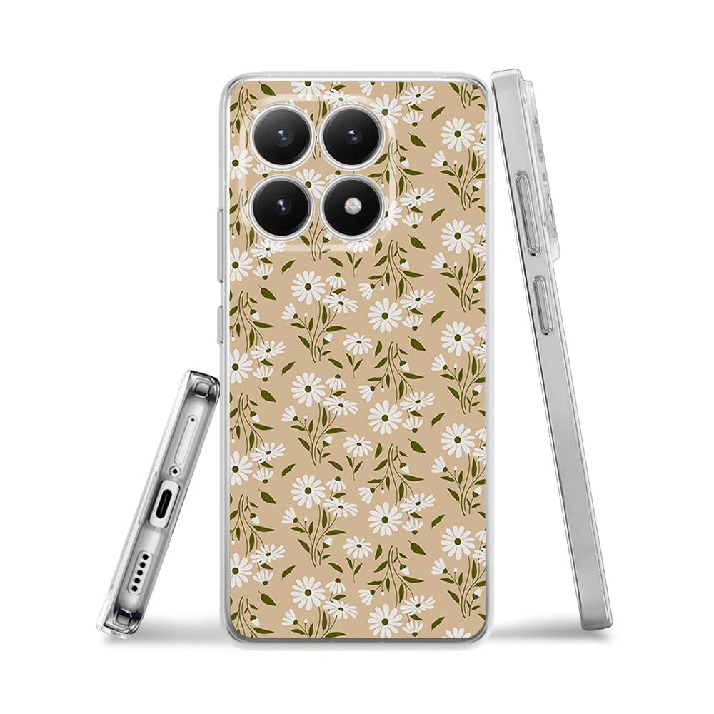Etui do Xiaomi 15T przeźroczyste, silikonowe Flexi, Summer Patterns, delikatne kwiatki na cielistym tle