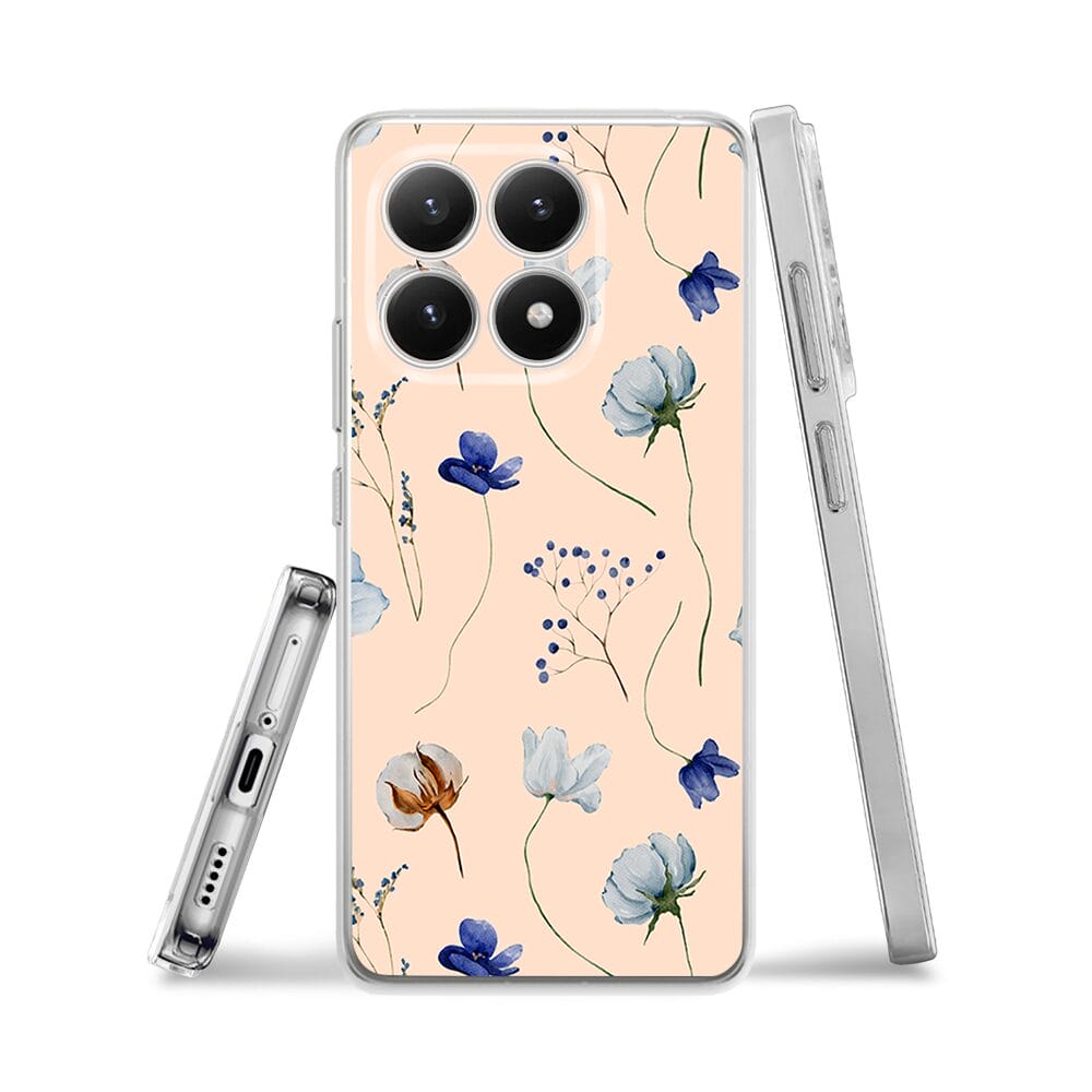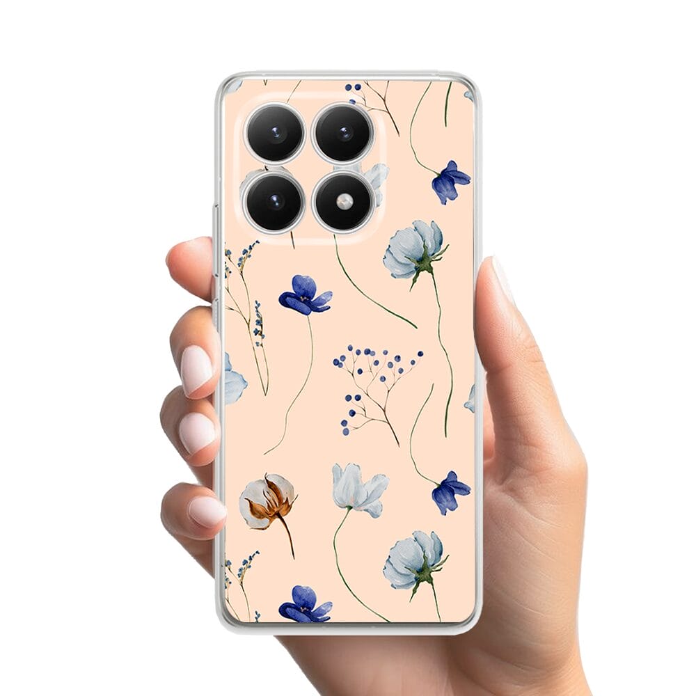 Etui do Xiaomi 15T przeźroczyste, silikonowe Flexi, Summer Patterns, kwiatki niebieskie na pudrowym tle