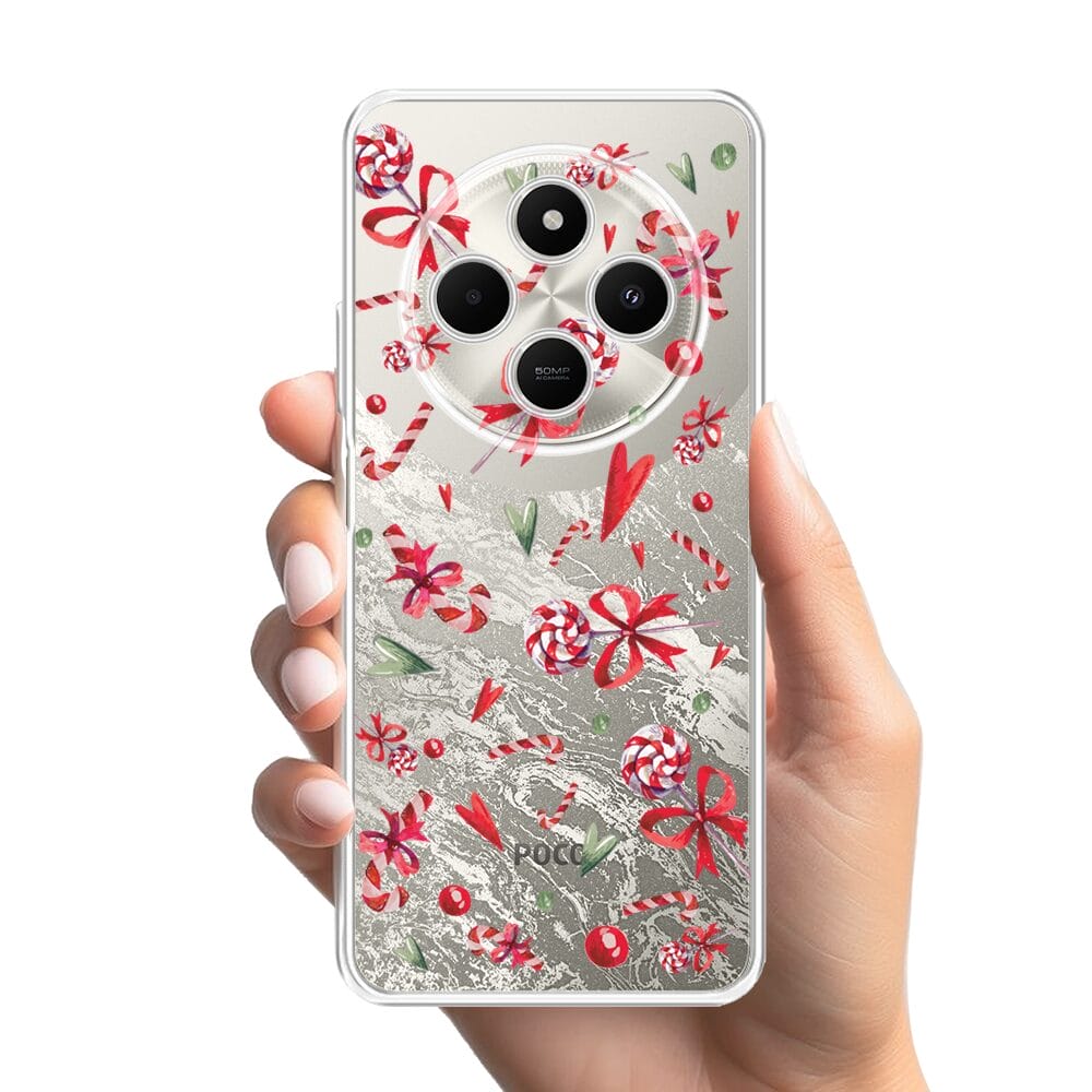Etui do Xiaomi POCO C75 przeźroczyste, silikonowe Flexi, Cukierki świąteczne