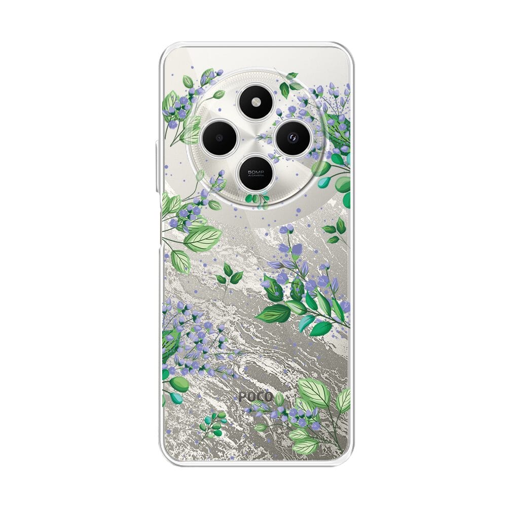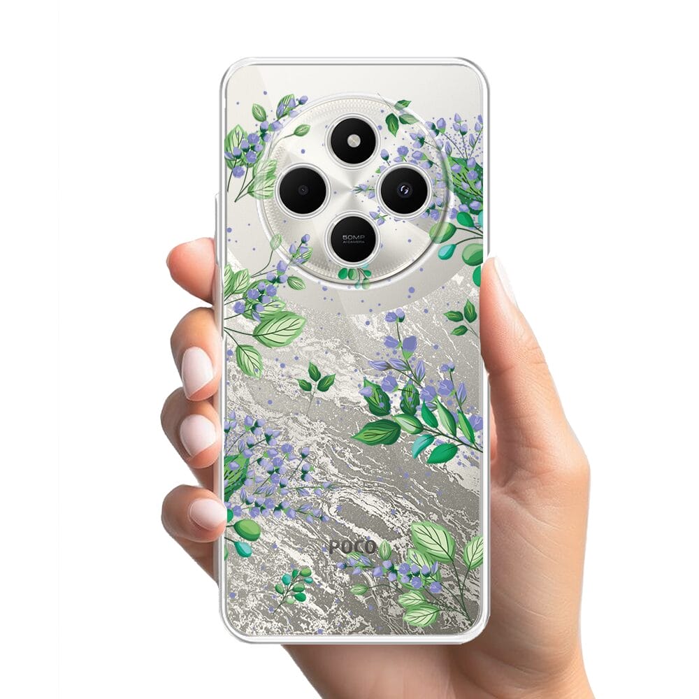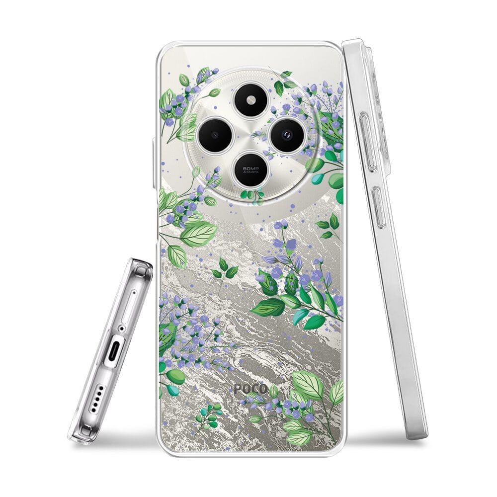Etui do Xiaomi POCO C75 przeźroczyste, silikonowe Flexi, fioletowe kwiatki