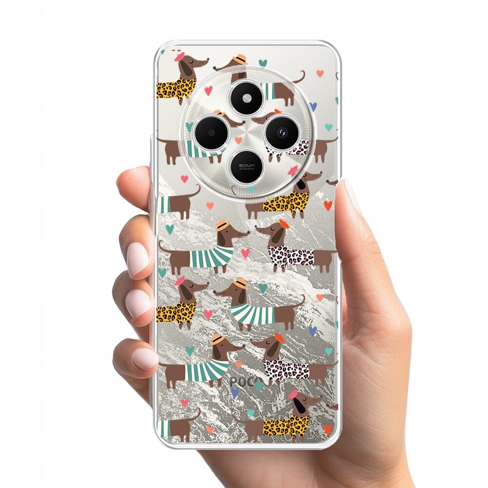 Etui do Xiaomi POCO C75 przeźroczyste, silikonowe Flexi, zakochane jamniki