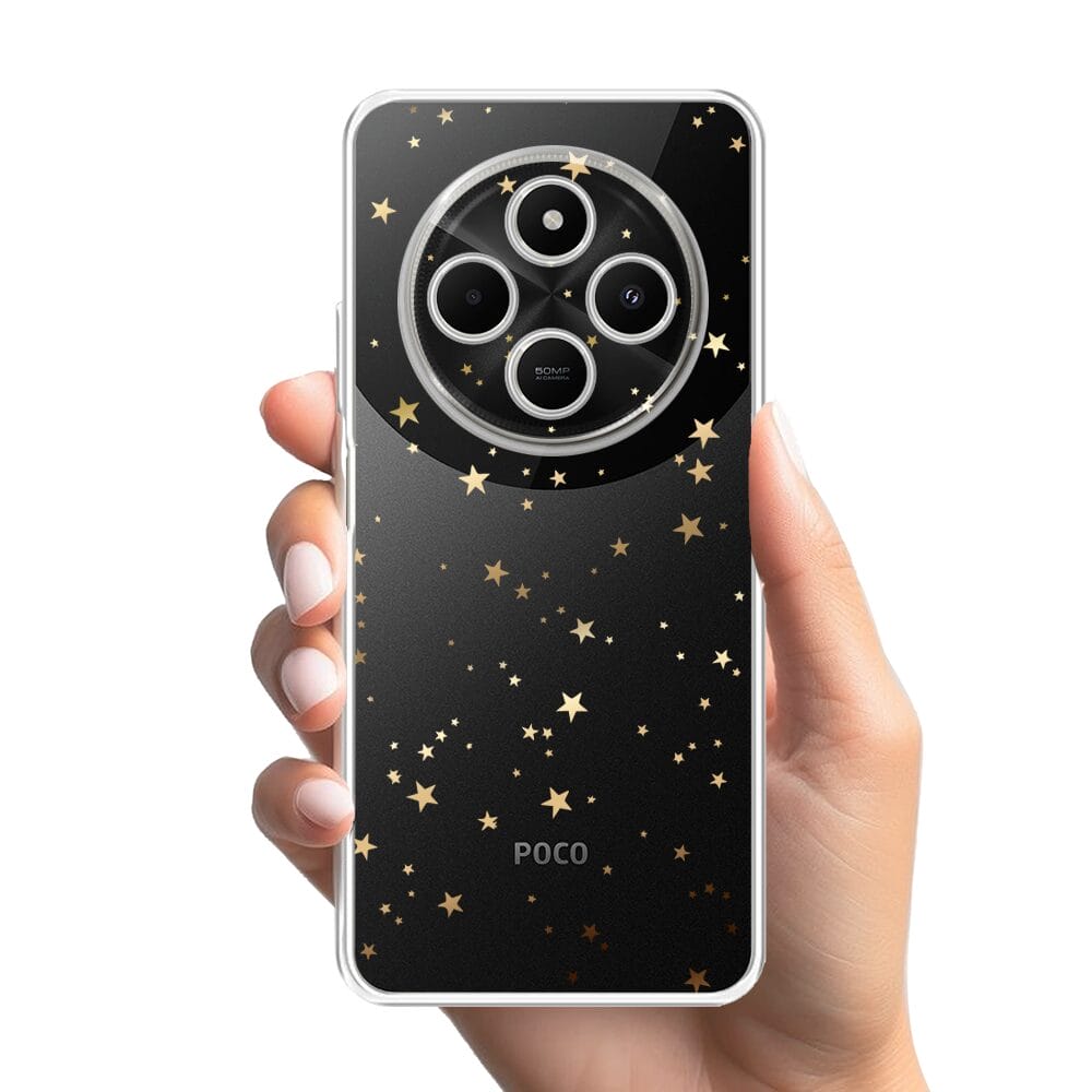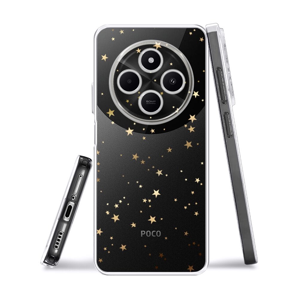 Etui do Xiaomi POCO C75 przeźroczyste, silikonowe Flexi, Zimowa magia, Złote gwiazdki