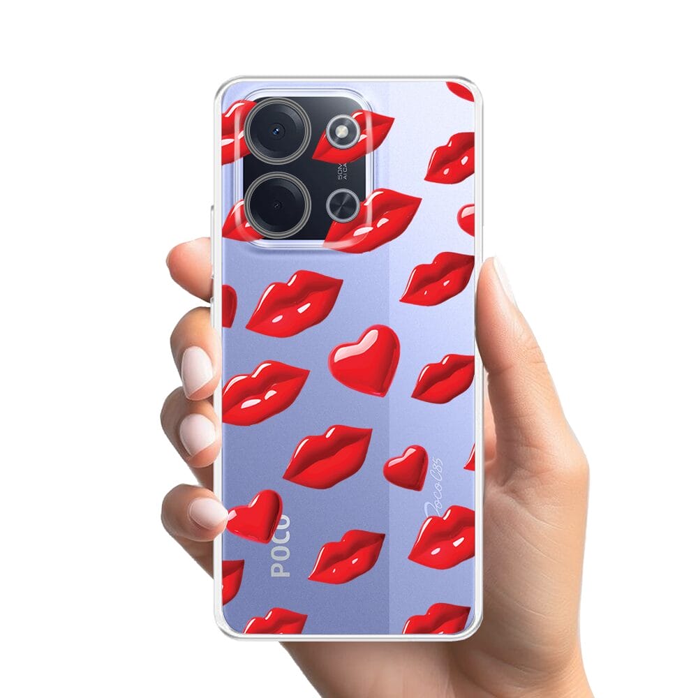 Etui do Xiaomi POCO C85 przeźroczyste, silikonowe Flexi, czerwone usta