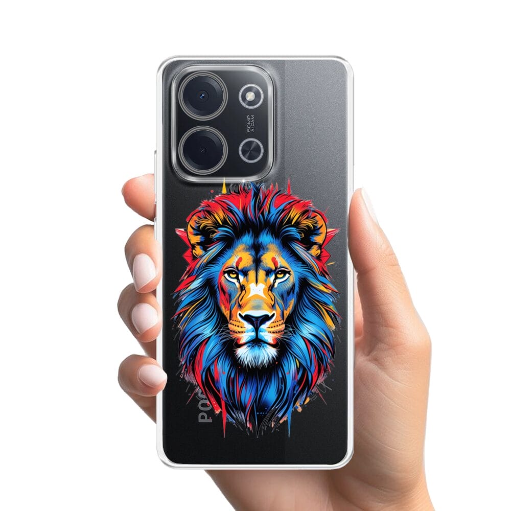 Etui do Xiaomi POCO C85 przeźroczyste, silikonowe Flexi, Dzika Mandala, Lew