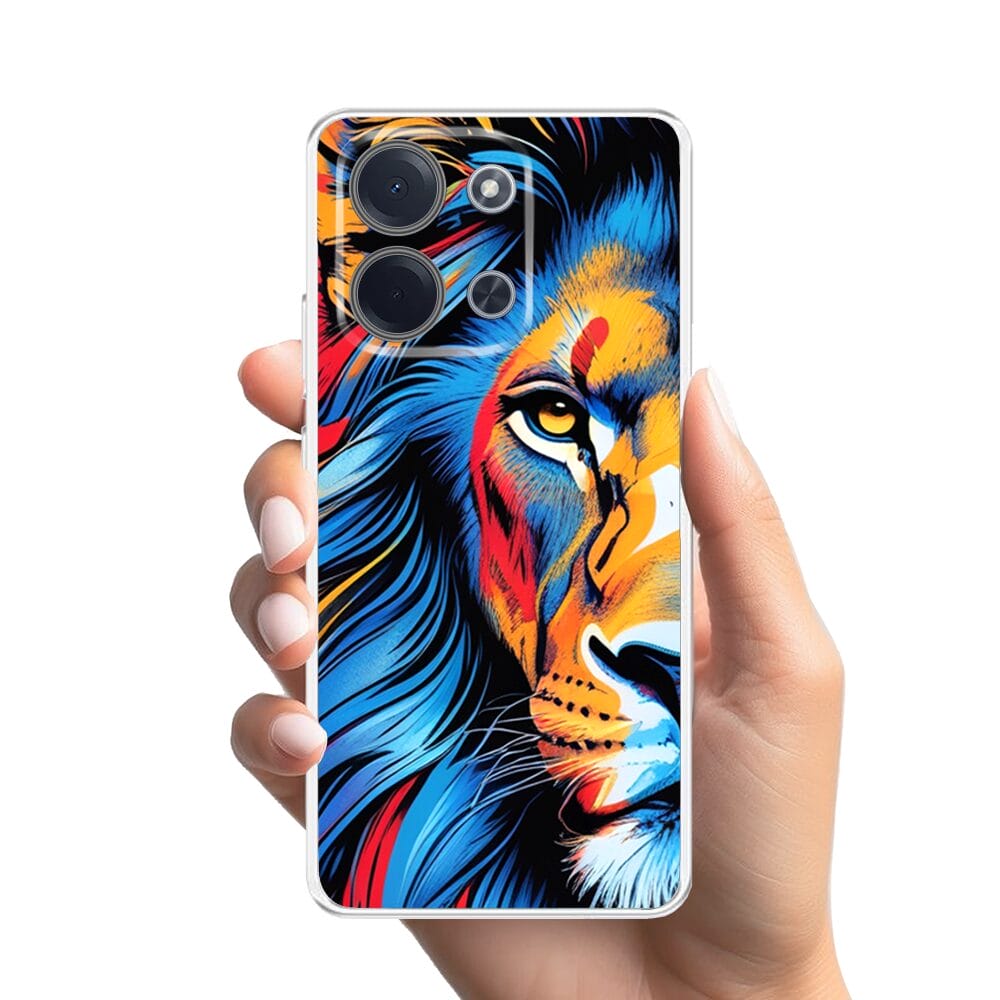 Etui do Xiaomi POCO C85 przeźroczyste, silikonowe Flexi, Dzika Mandala, Lwie spojrzenie