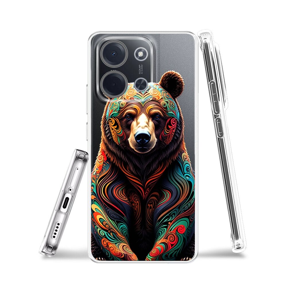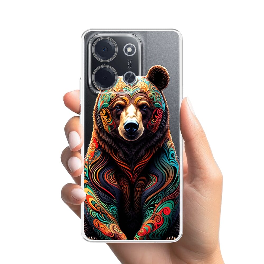 Etui do Xiaomi POCO C85 przeźroczyste, silikonowe Flexi, Dzika Mandala, Niedźwiedź