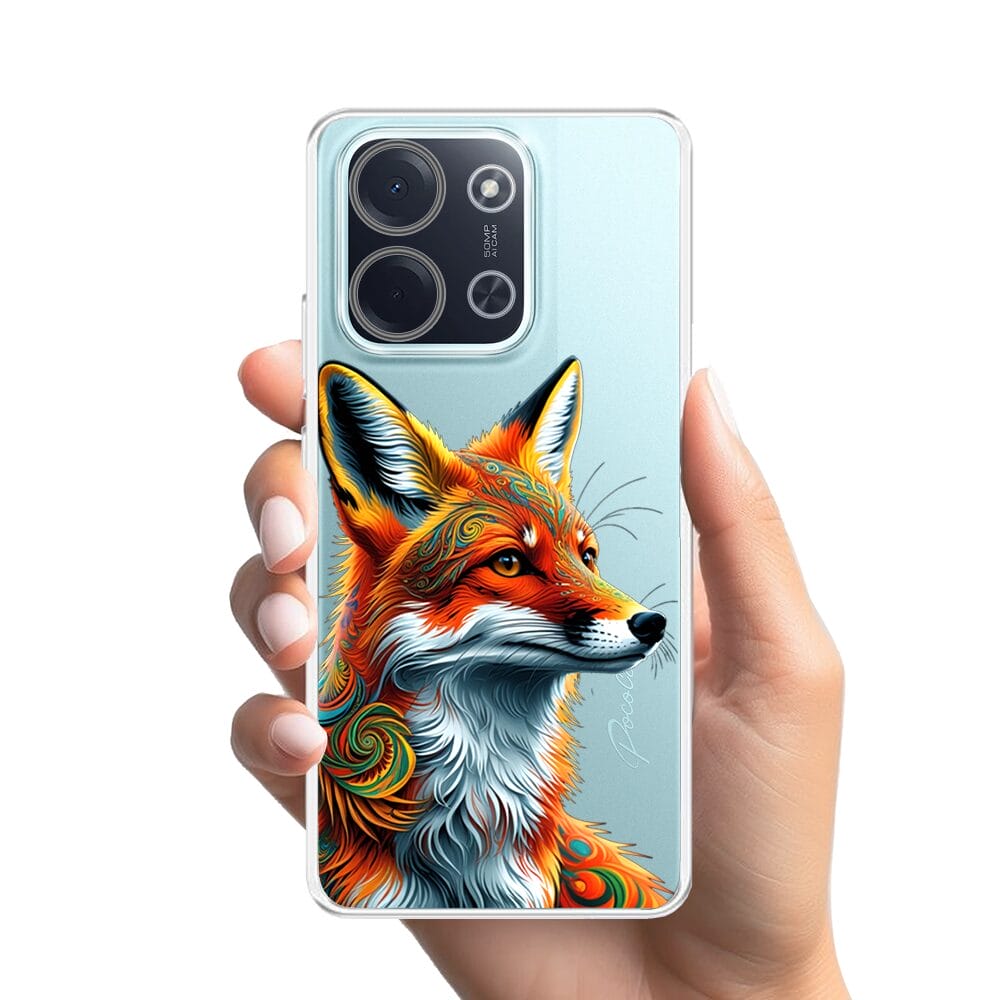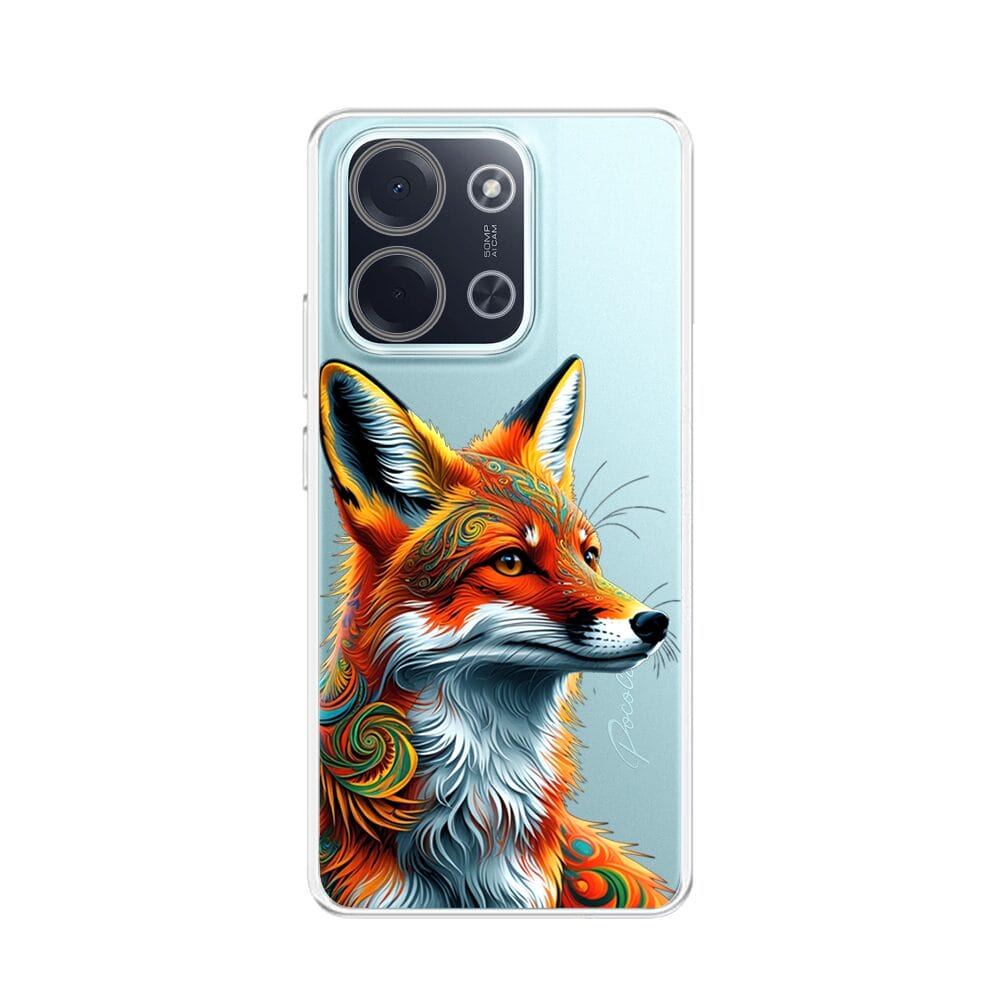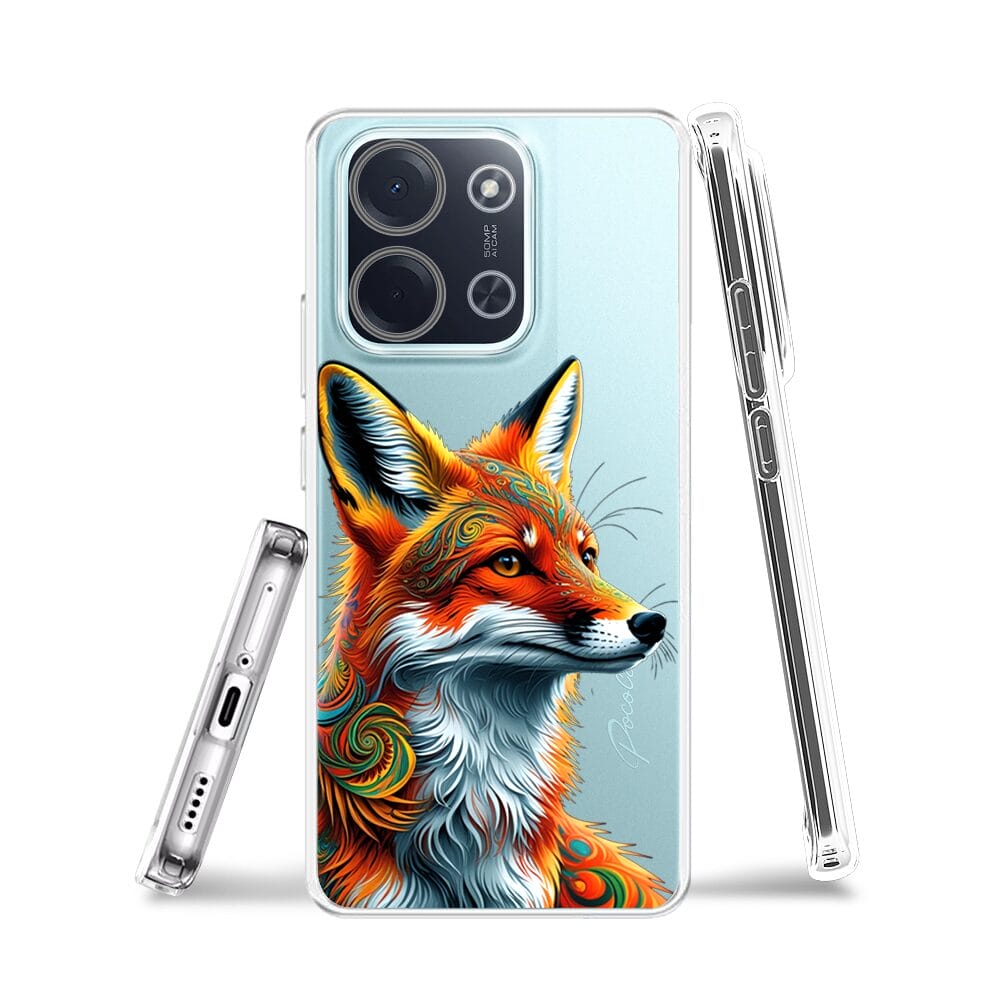 Etui do Xiaomi POCO C85 przeźroczyste, silikonowe Flexi, Dzika Mandala, Twarz lisa