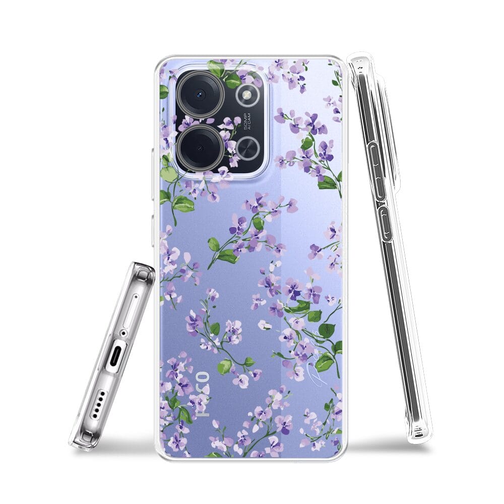 Etui do Xiaomi POCO C85 przeźroczyste, silikonowe Flexi, Fioletowe Bratki