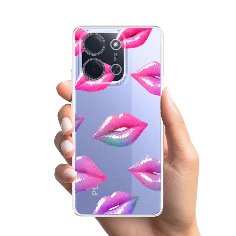 Etui do Xiaomi POCO C85 przeźroczyste, silikonowe Flexi, hologramowe usta