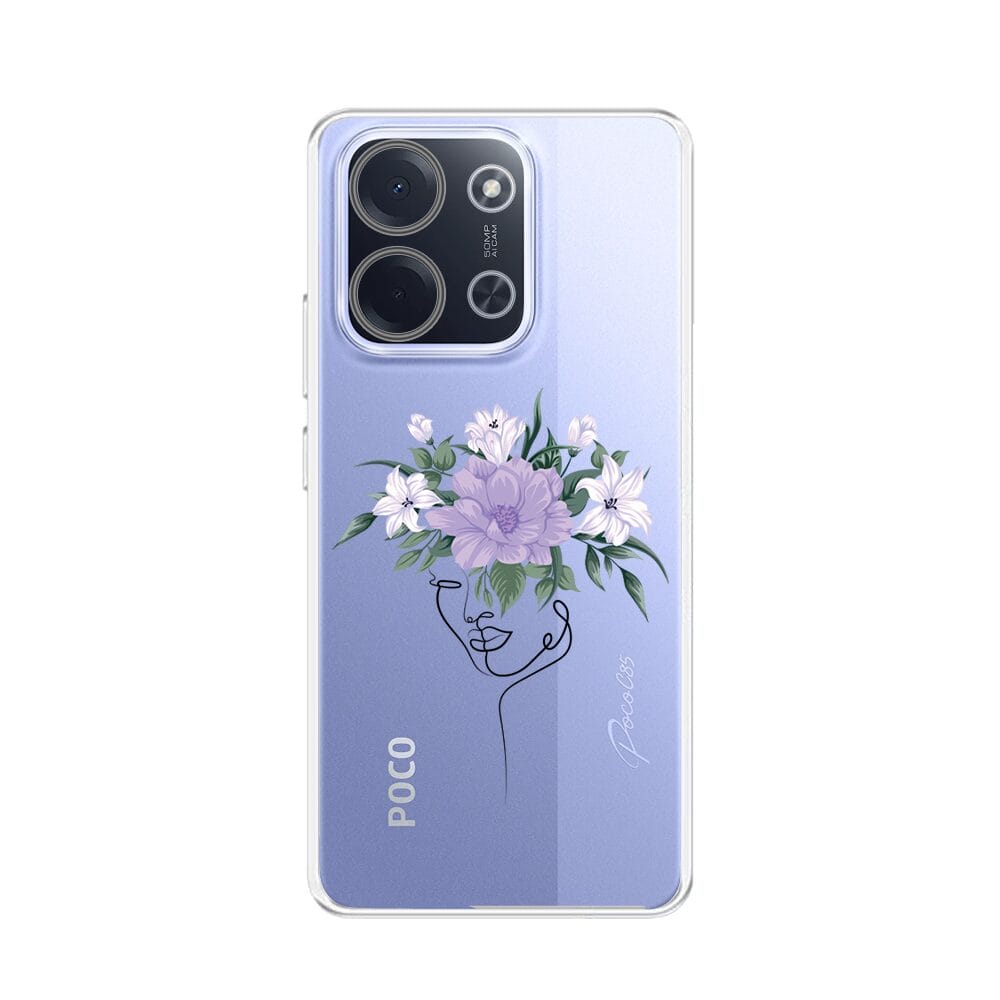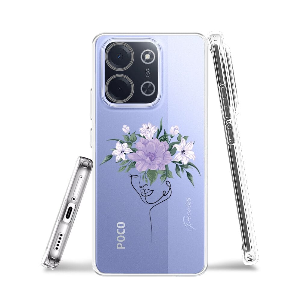 Etui do Xiaomi POCO C85 przeźroczyste, silikonowe Flexi, kobieta z Kwiatami