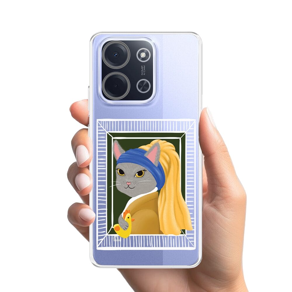 Etui do Xiaomi POCO C85 przeźroczyste, silikonowe Flexi, kotek z kurczakiem