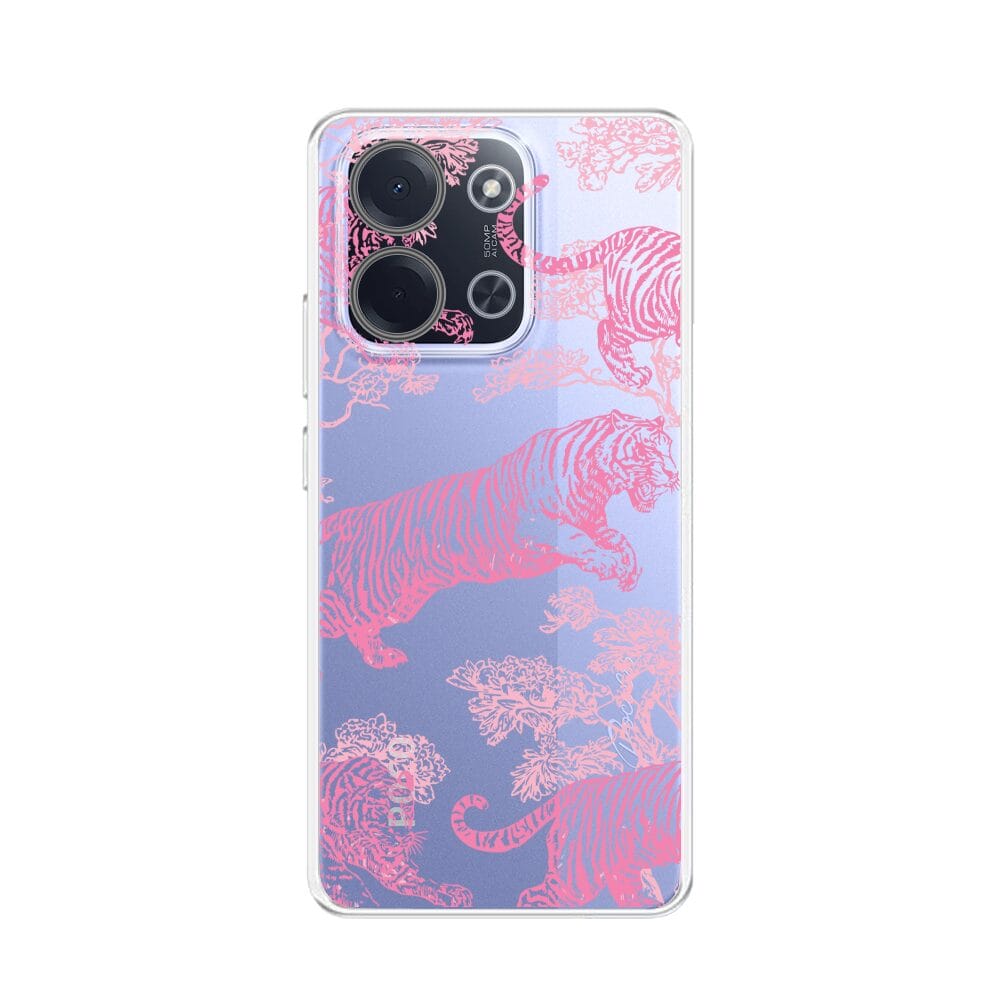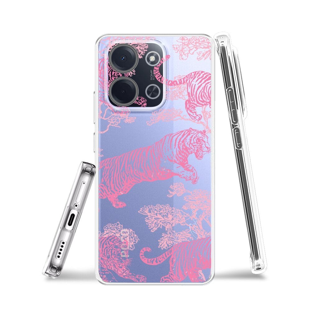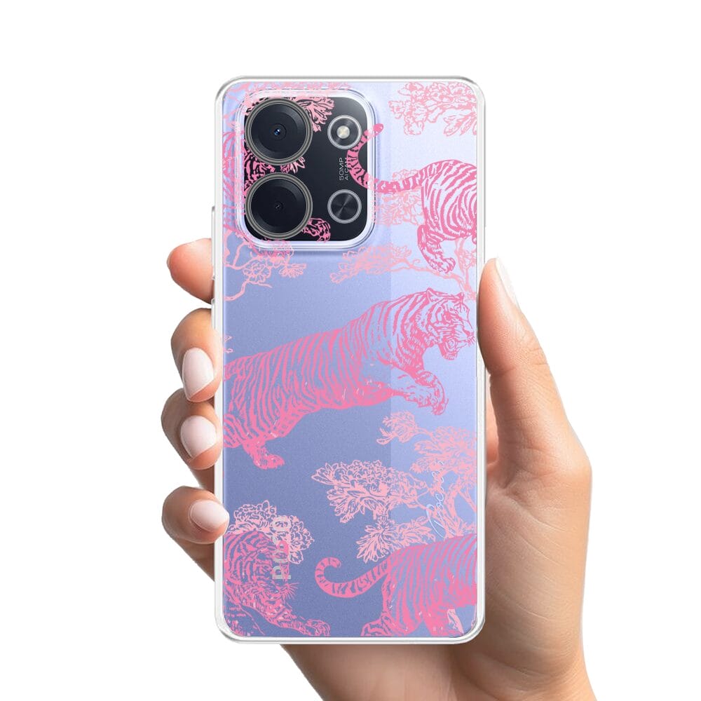 Etui do Xiaomi POCO C85 przeźroczyste, silikonowe Flexi, Mystic, Różowe tygrysy