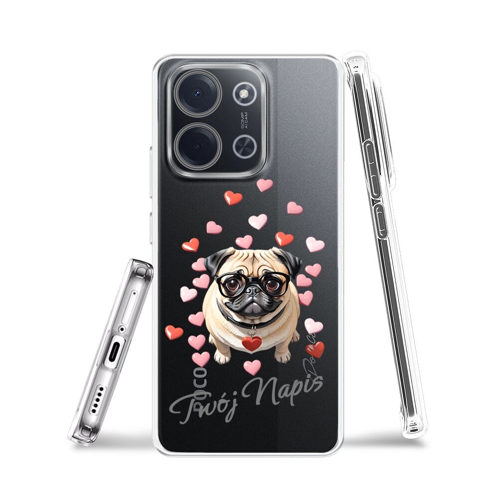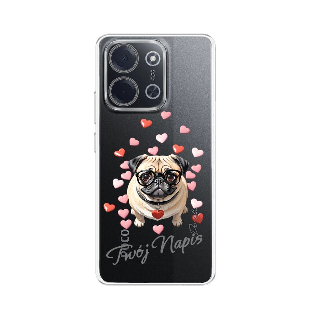Etui do Xiaomi POCO C85 przeźroczyste, silikonowe Flexi, Puppy Love, pies rasy Mops