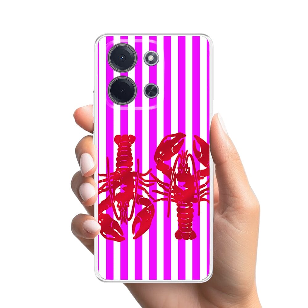 Etui do Xiaomi POCO C85 przeźroczyste, silikonowe Flexi, Summer Patterns, kraby z różowymi paskami