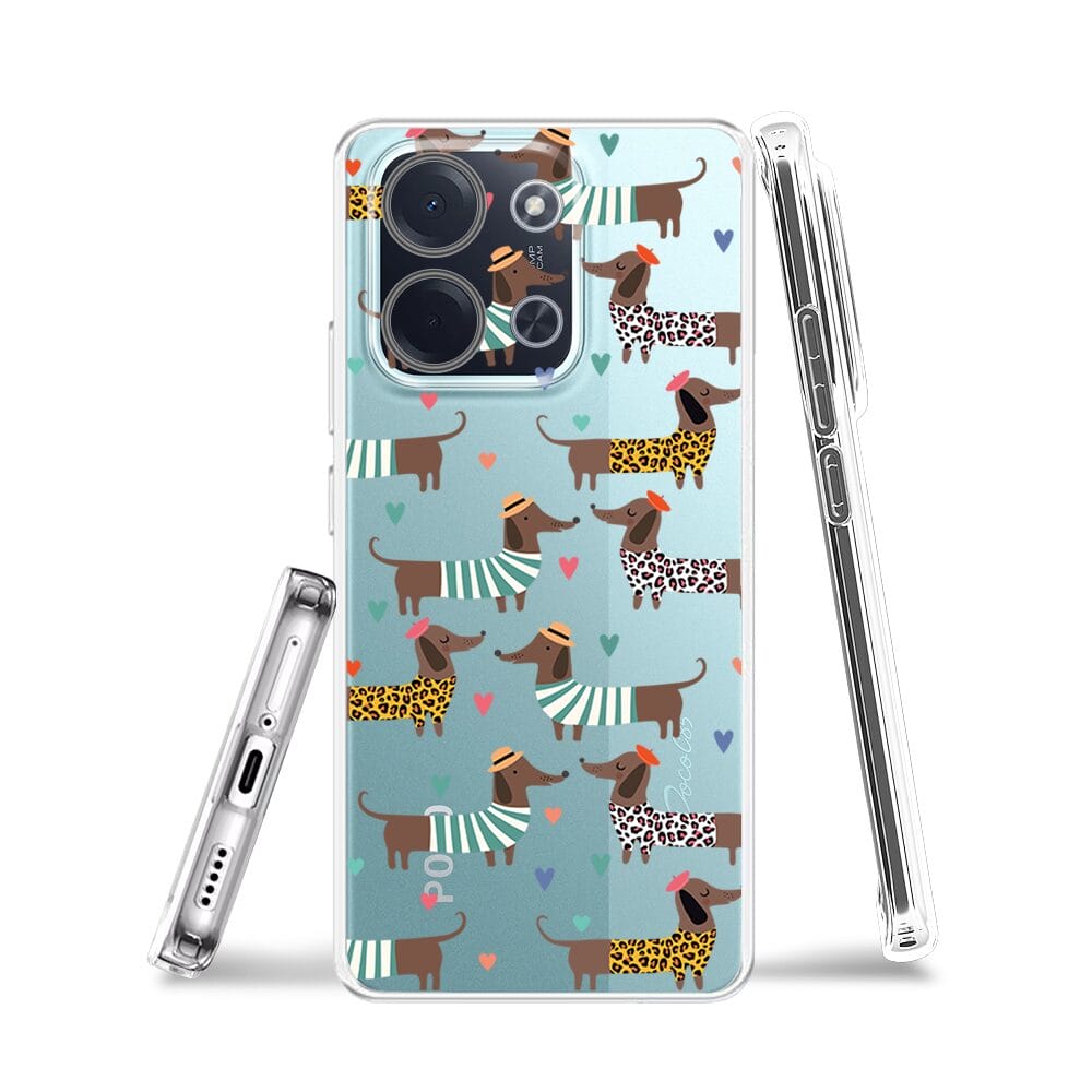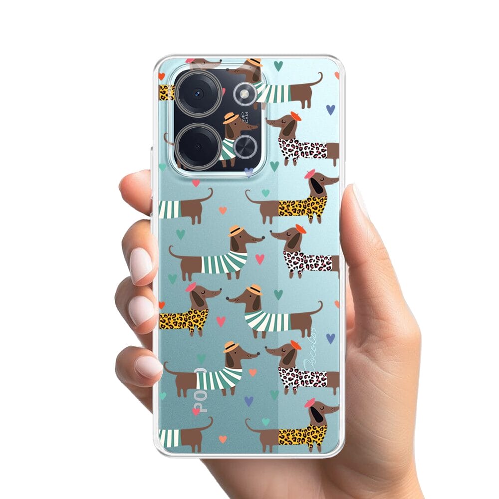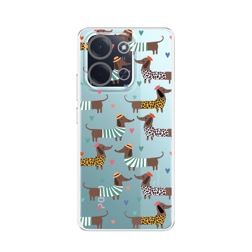 Etui do Xiaomi POCO C85 przeźroczyste, silikonowe Flexi, Summer Patterns, zakochane jamniki