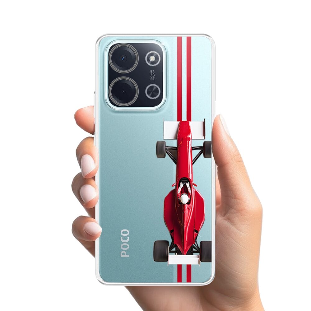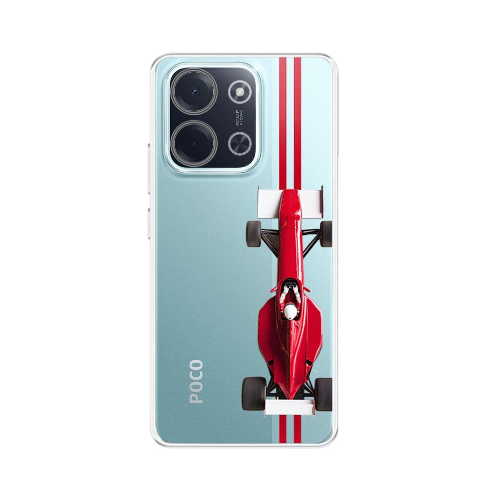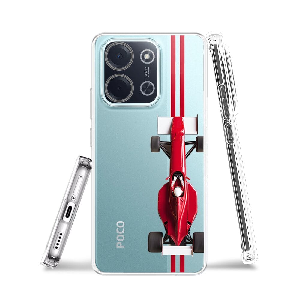 Etui do Xiaomi POCO C85 przeźroczyste, silikonowe Flexi, Szybkie Auta, czerwone F1